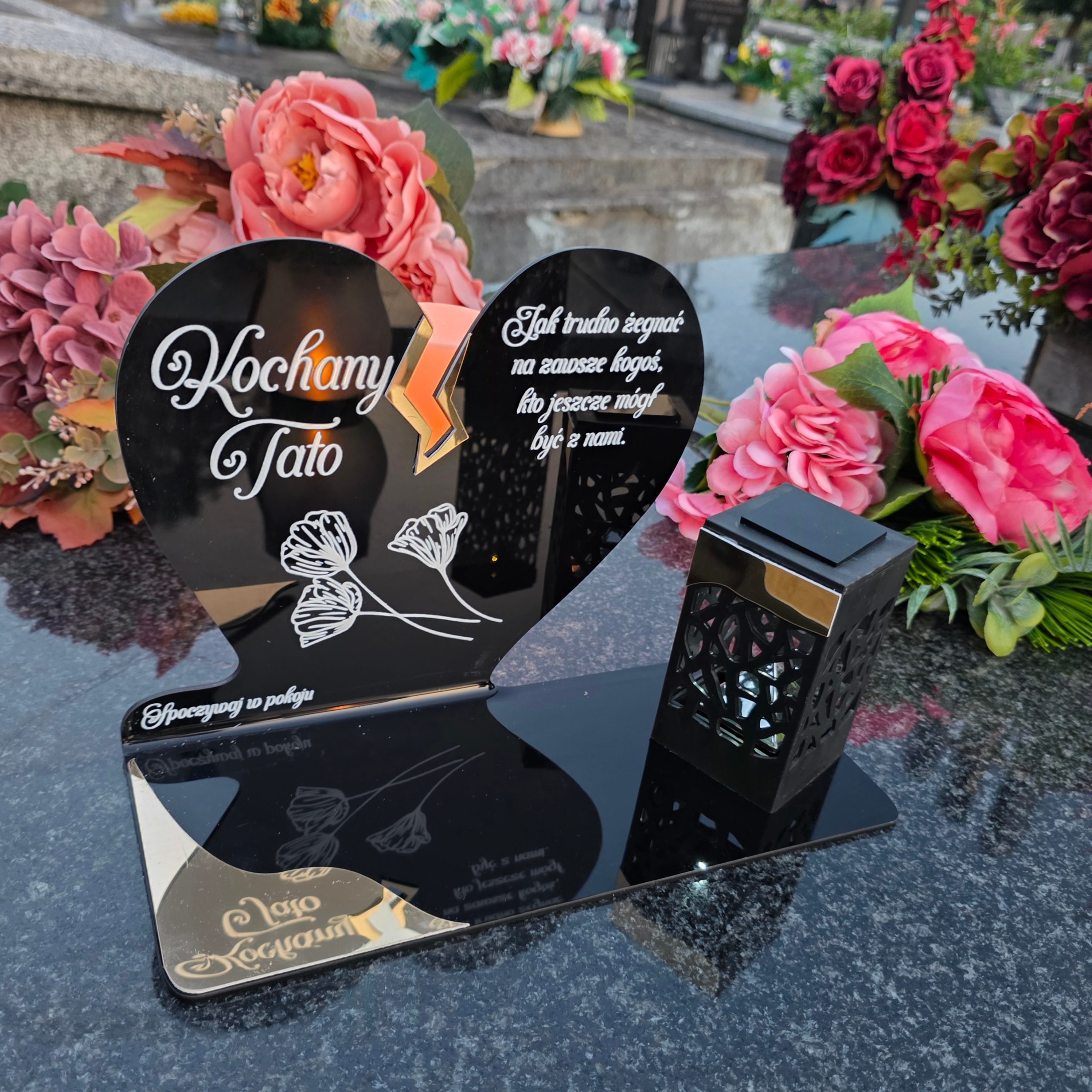 Wyjątkowy znicz nagrobny w formie czarnego serca z delikatnym złotym pęknięciem to symbol miłości i pamięci, która nigdy nie gaśnie. Elegancka forma połączona z nowoczesnym rozwiązaniem w postaci solarnej lampki LED sprawia, że znicz wyróżnia się na tle tradycyjnych modeli, będąc jednocześnie wzruszającym i praktycznym dodatkiem do miejsca pamięci.