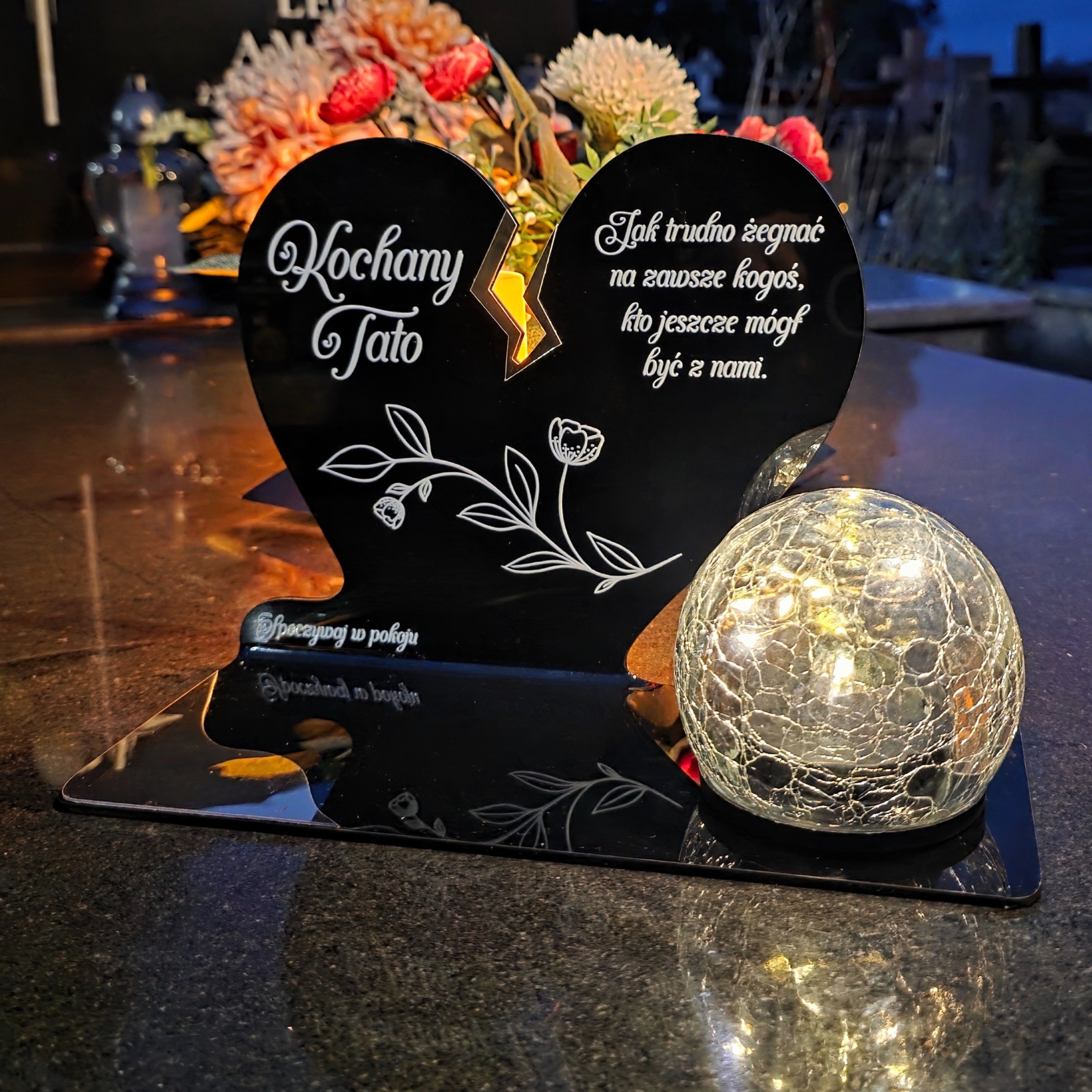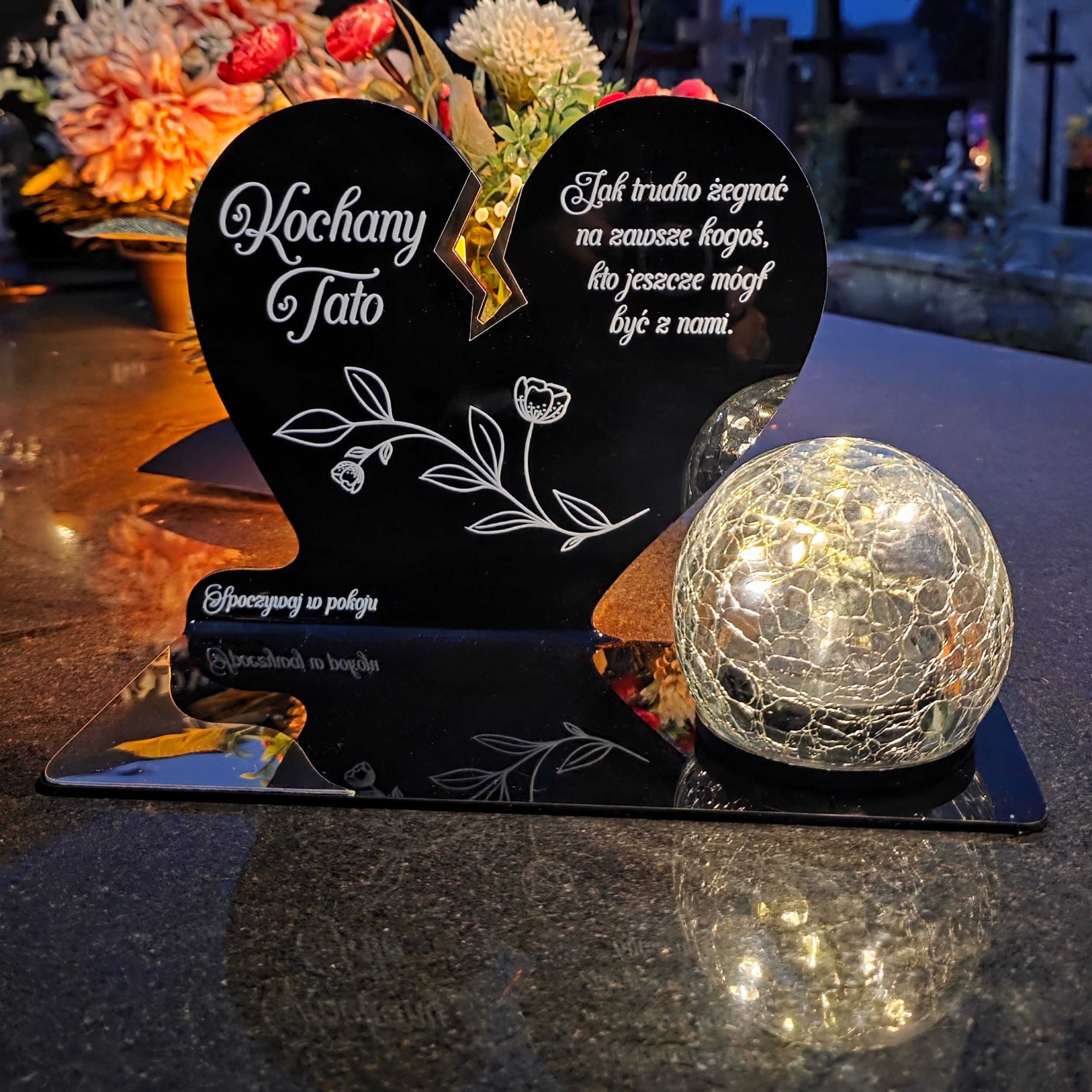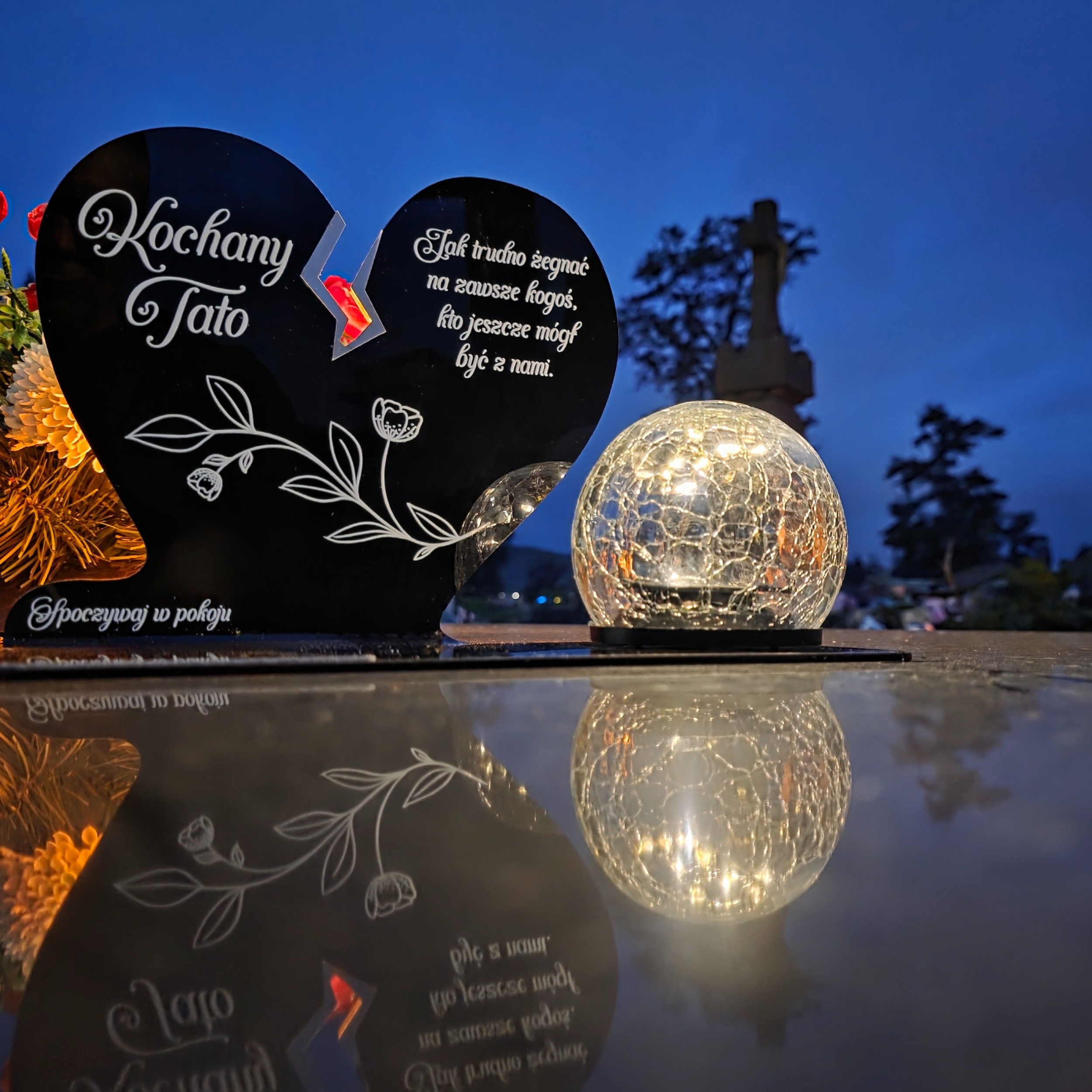 To niezwykła pamiątka, która wyróżnia się eleganckim designem i praktycznym działaniem. Połączenie serca z nowoczesną kulą solarną sprawia, że znicz nie tylko pięknie zdobi nagrobek, ale też zapewnia światło pamięci przez cały rok – bez konieczności wymiany wkładów.