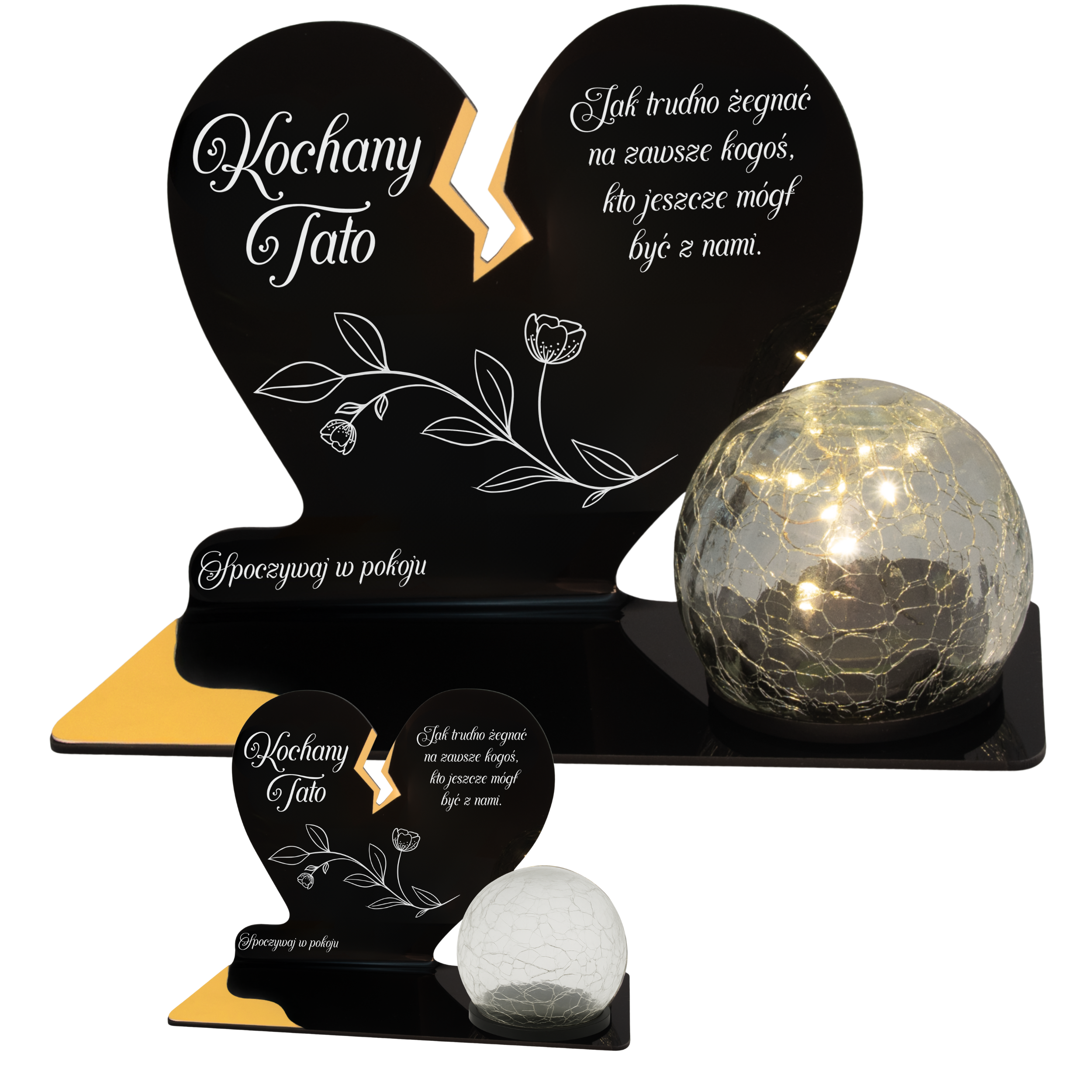 Elegancki znicz nagrobny dla Taty– serce ze złotymi akcentami i solarną kulą LED