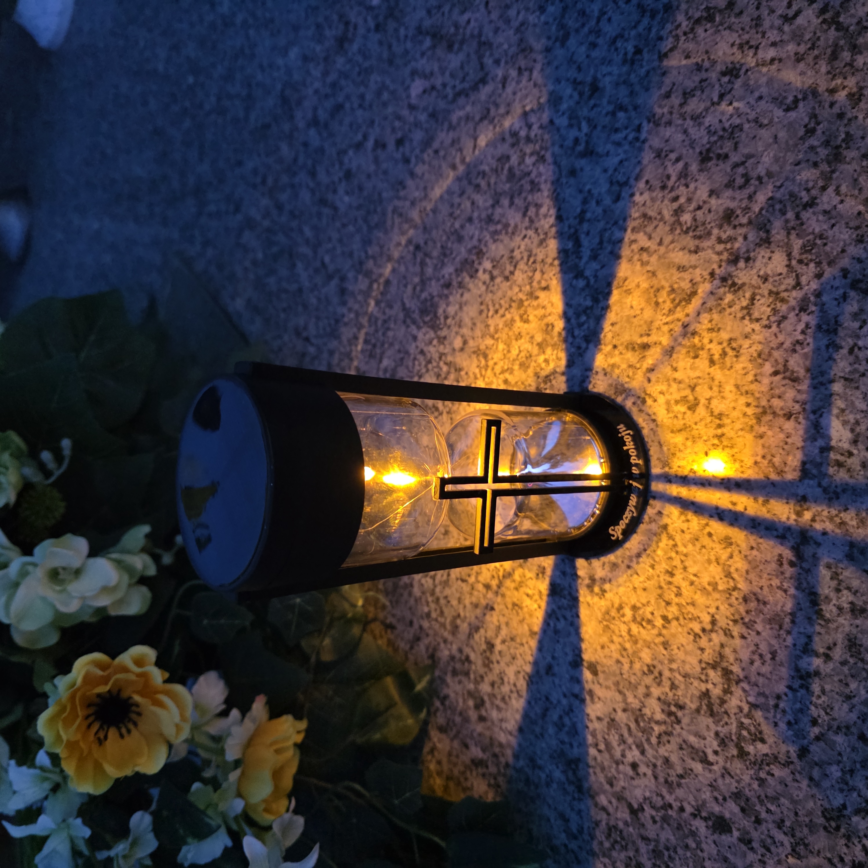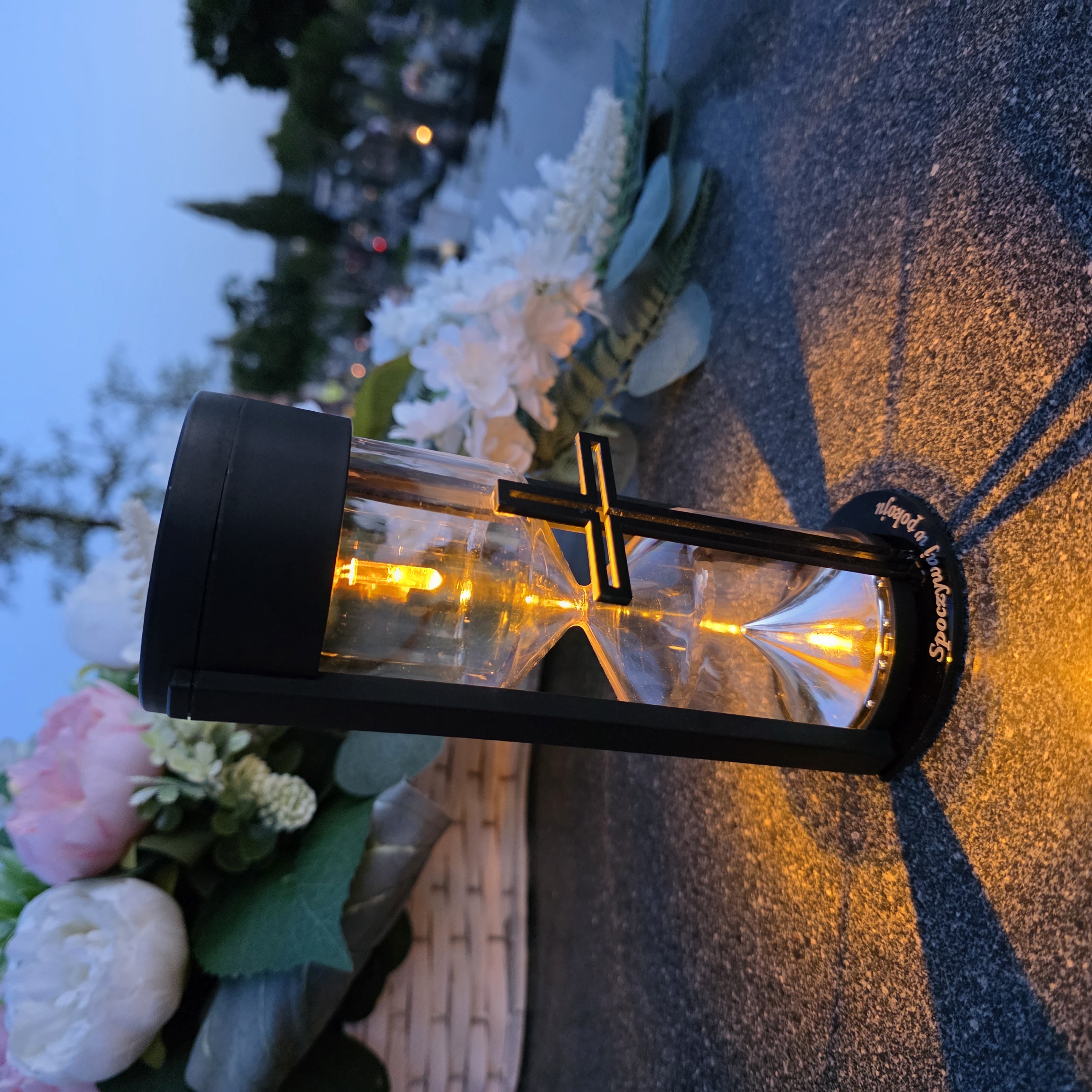 LAMPA SOLARNA ZNICZ NA GRÓB NOWOCZESNA INSPIROWANA KLASYKĄ Z KRZYŻEM