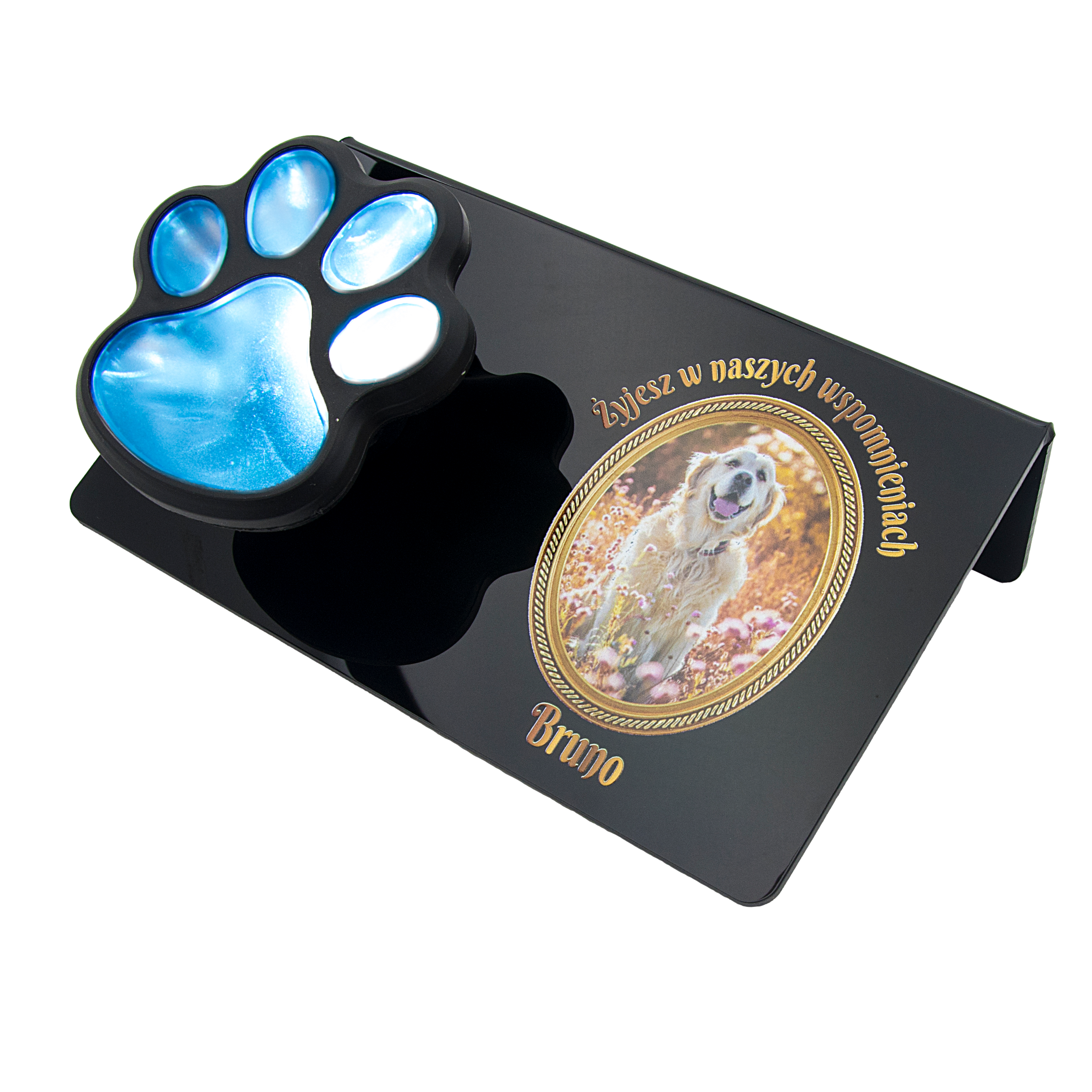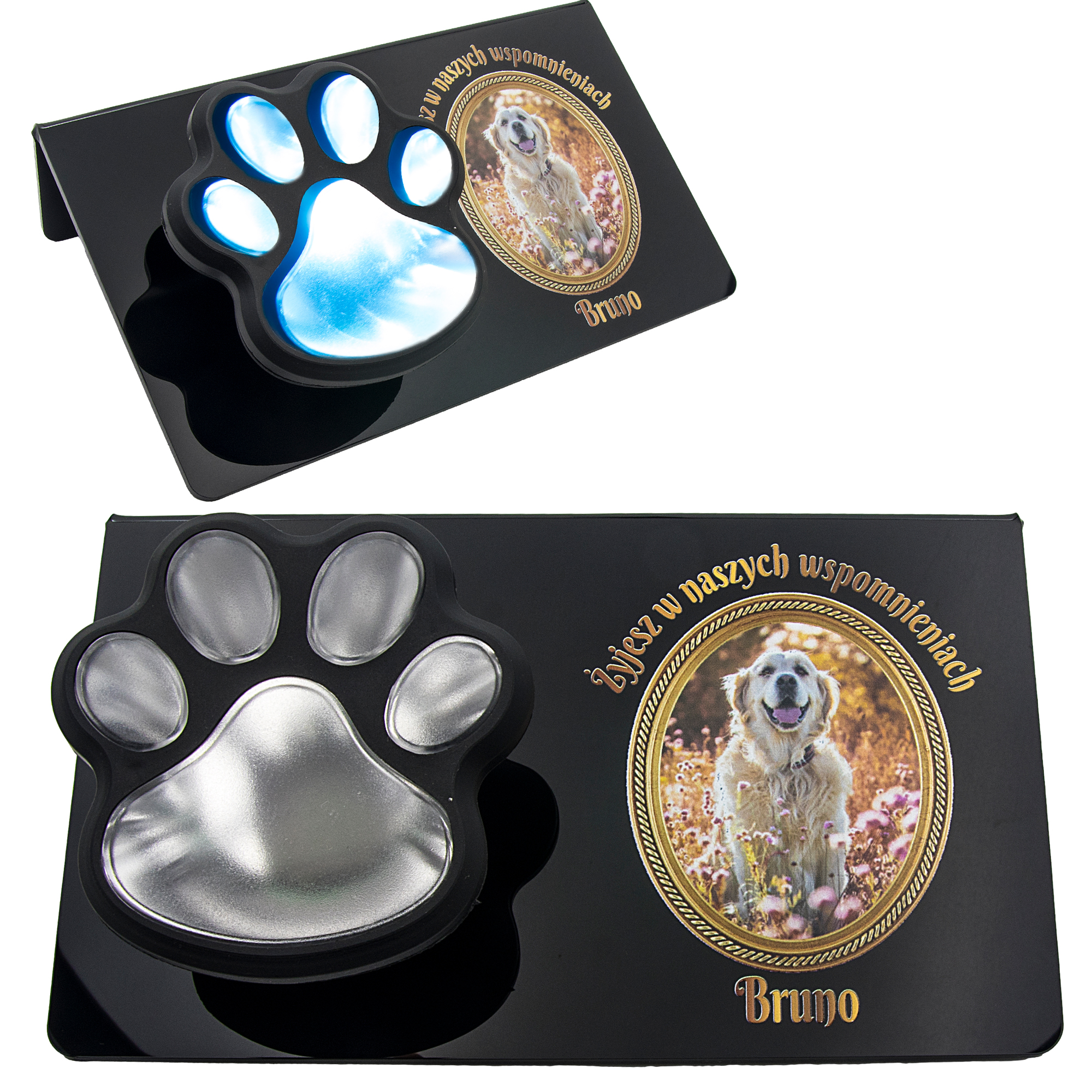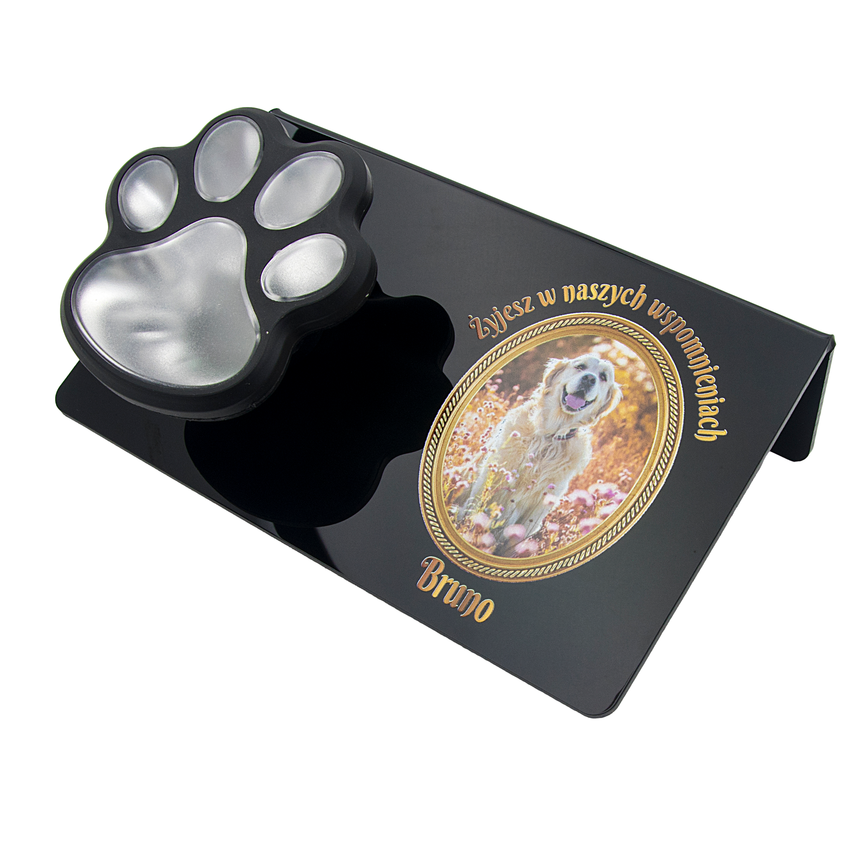 ZNICZ SOLARNY LED dla Psa/Kota statuetka ZE ZDJĘCIEM PUPILA I JEGO IMIĘ lampka 3D łapa