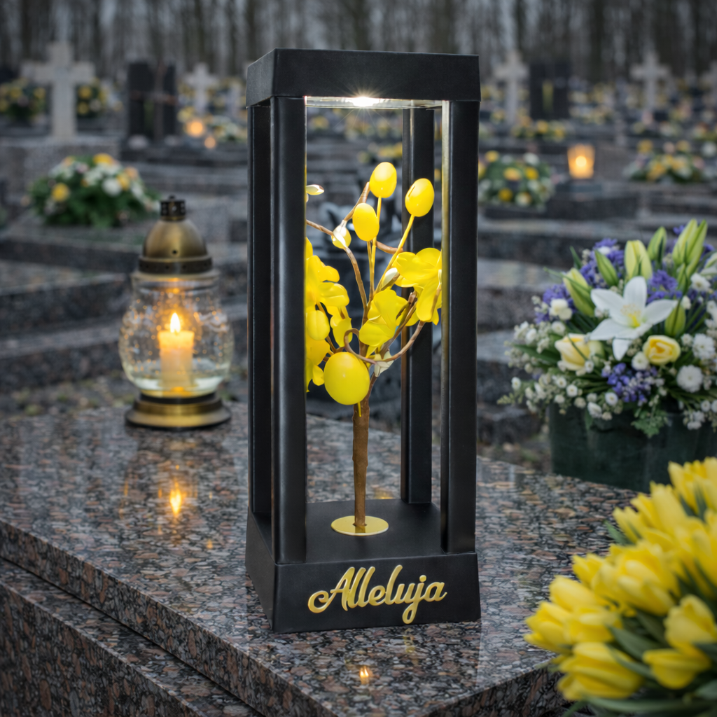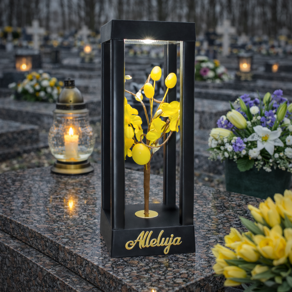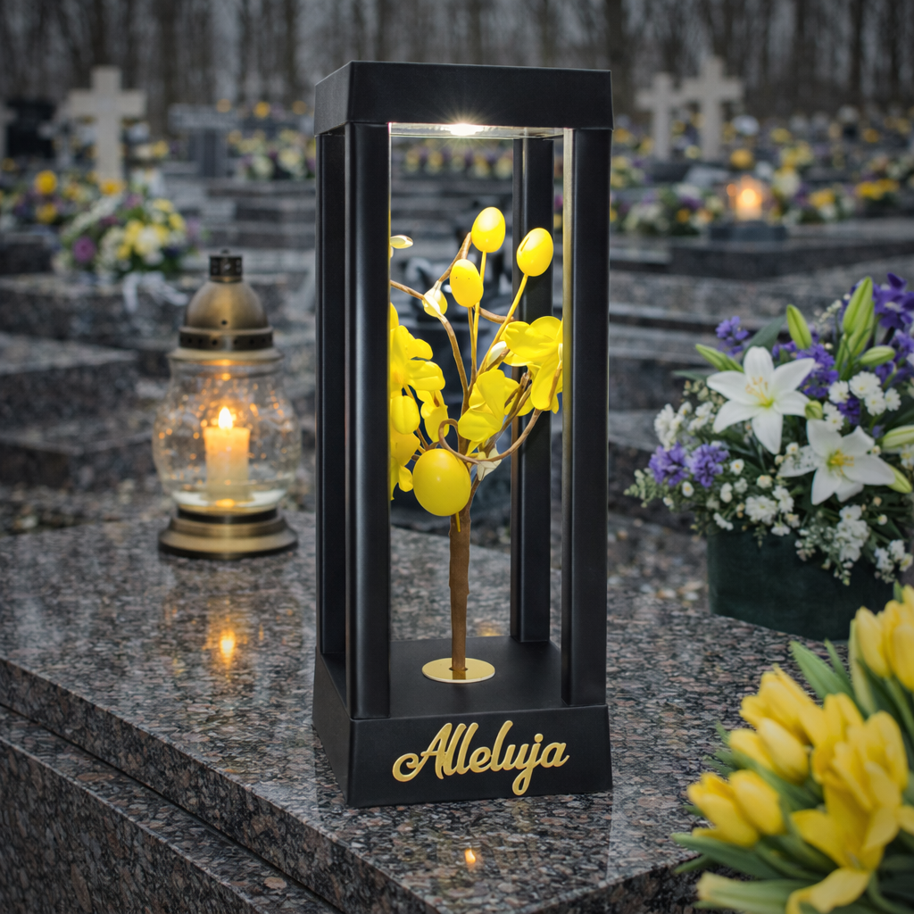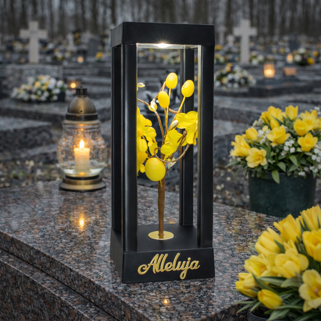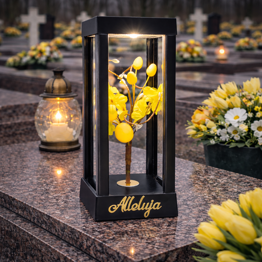 Wielkanocny Znicz Solarny LED „Alleluja” – Elegancka Ozdoba na Grób