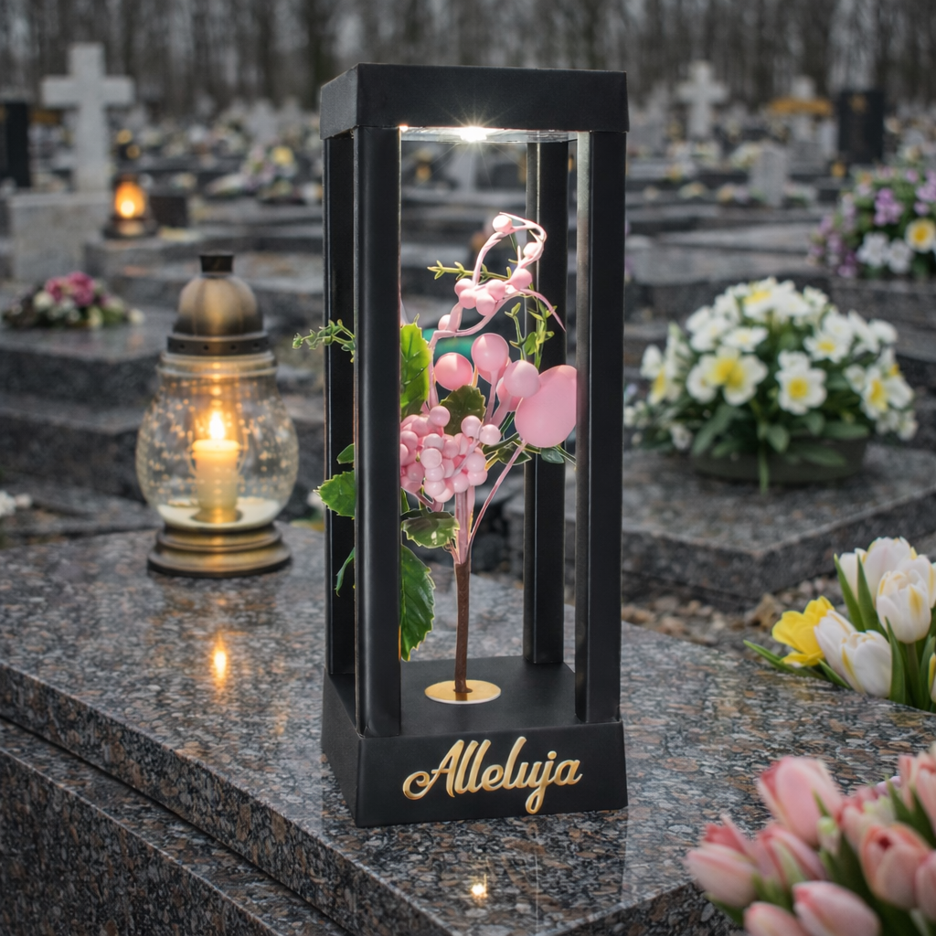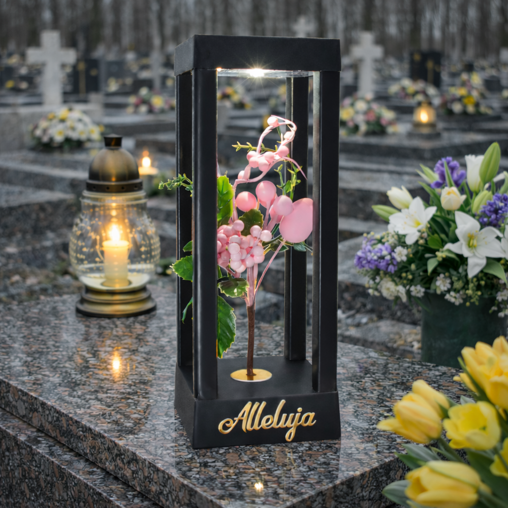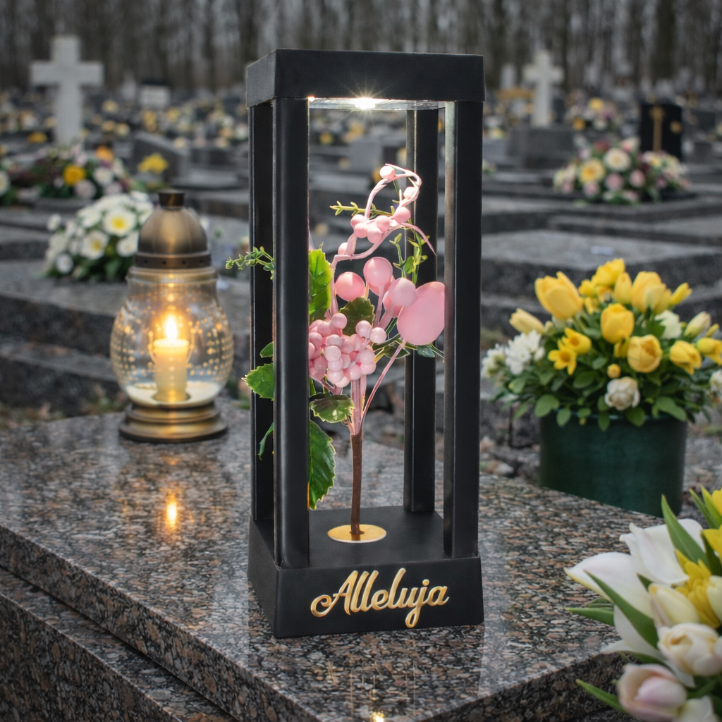 Wielkanocny Znicz Solarny LED „Alleluja” – Elegancka Ozdoba na Grób