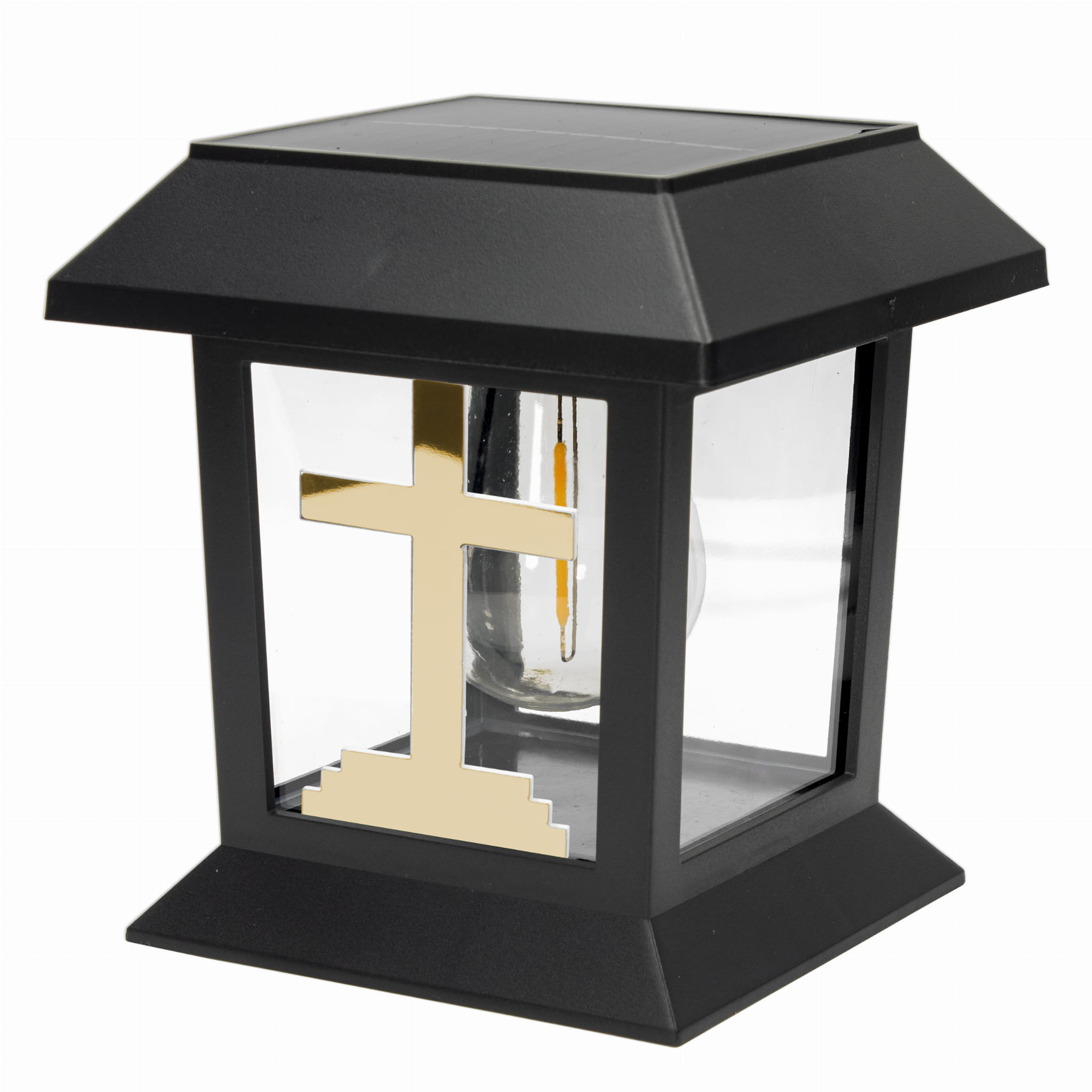 LAMPA SOLARNA ZNICZ NA GRÓB NOWOCZESNA INSPIROWANA KLASYKĄ ZE ZŁOTYM KRZYŻEM