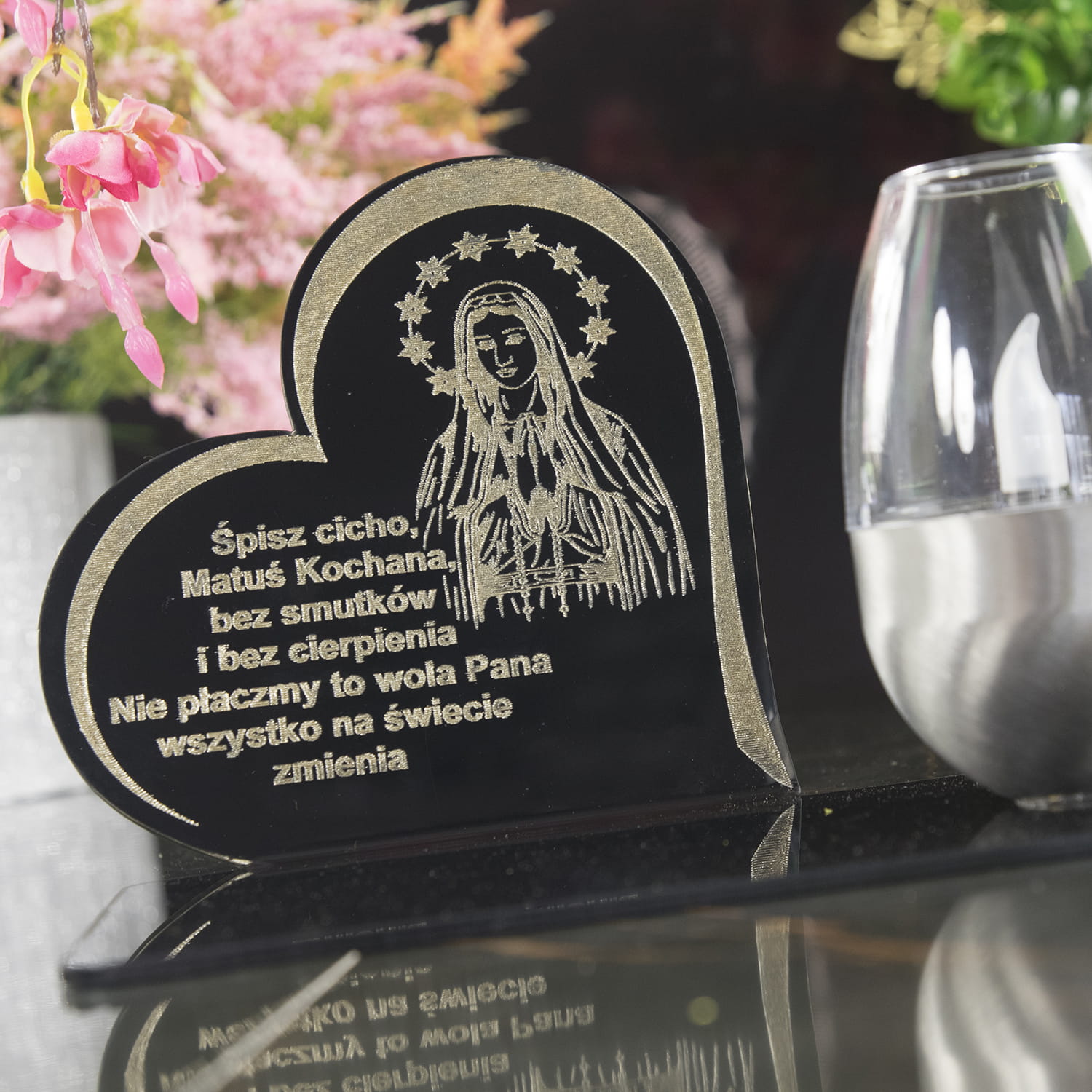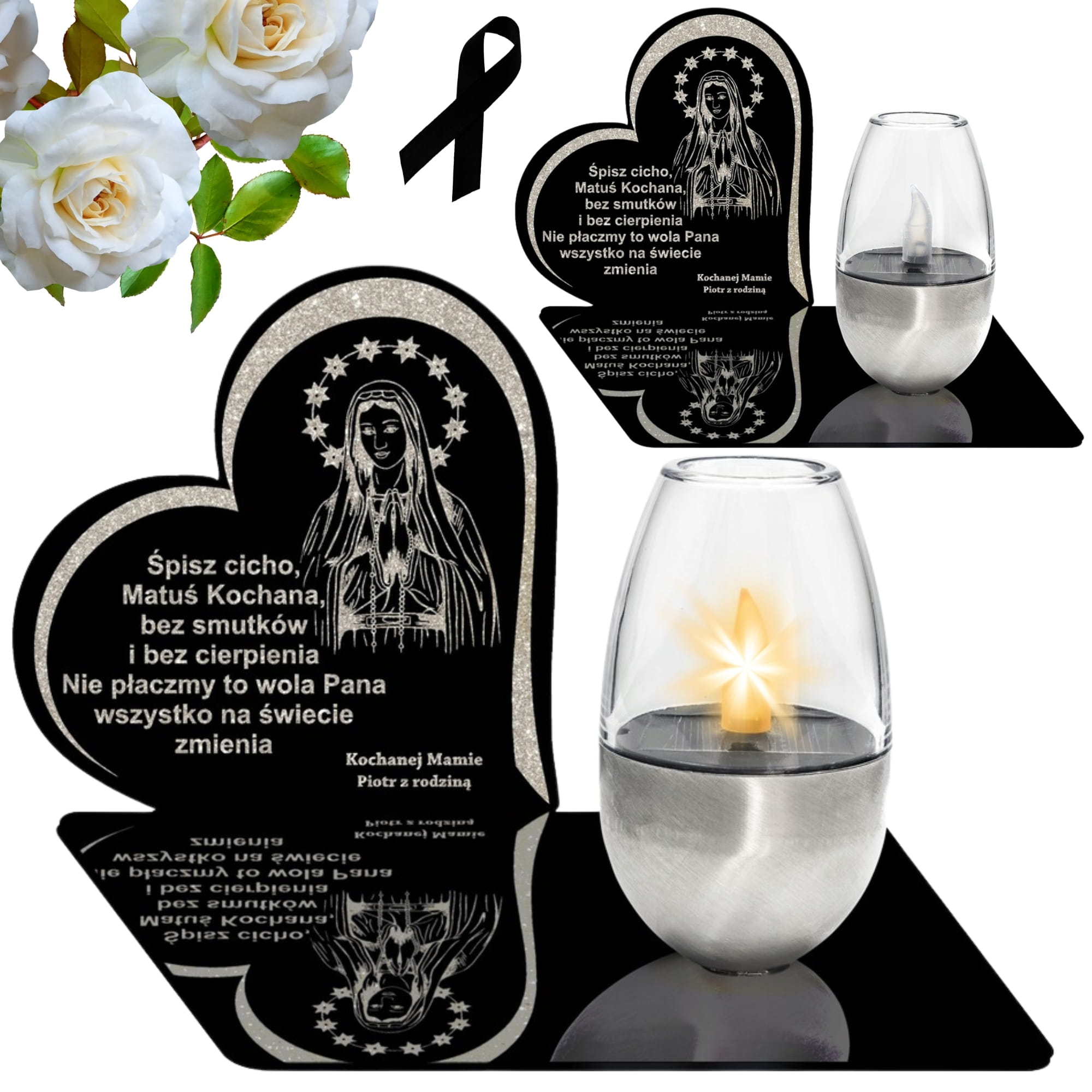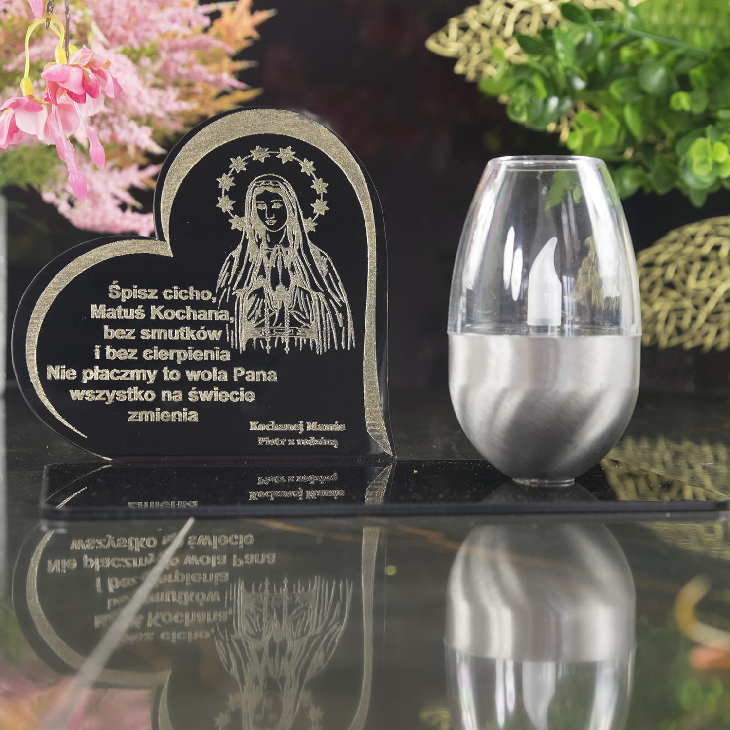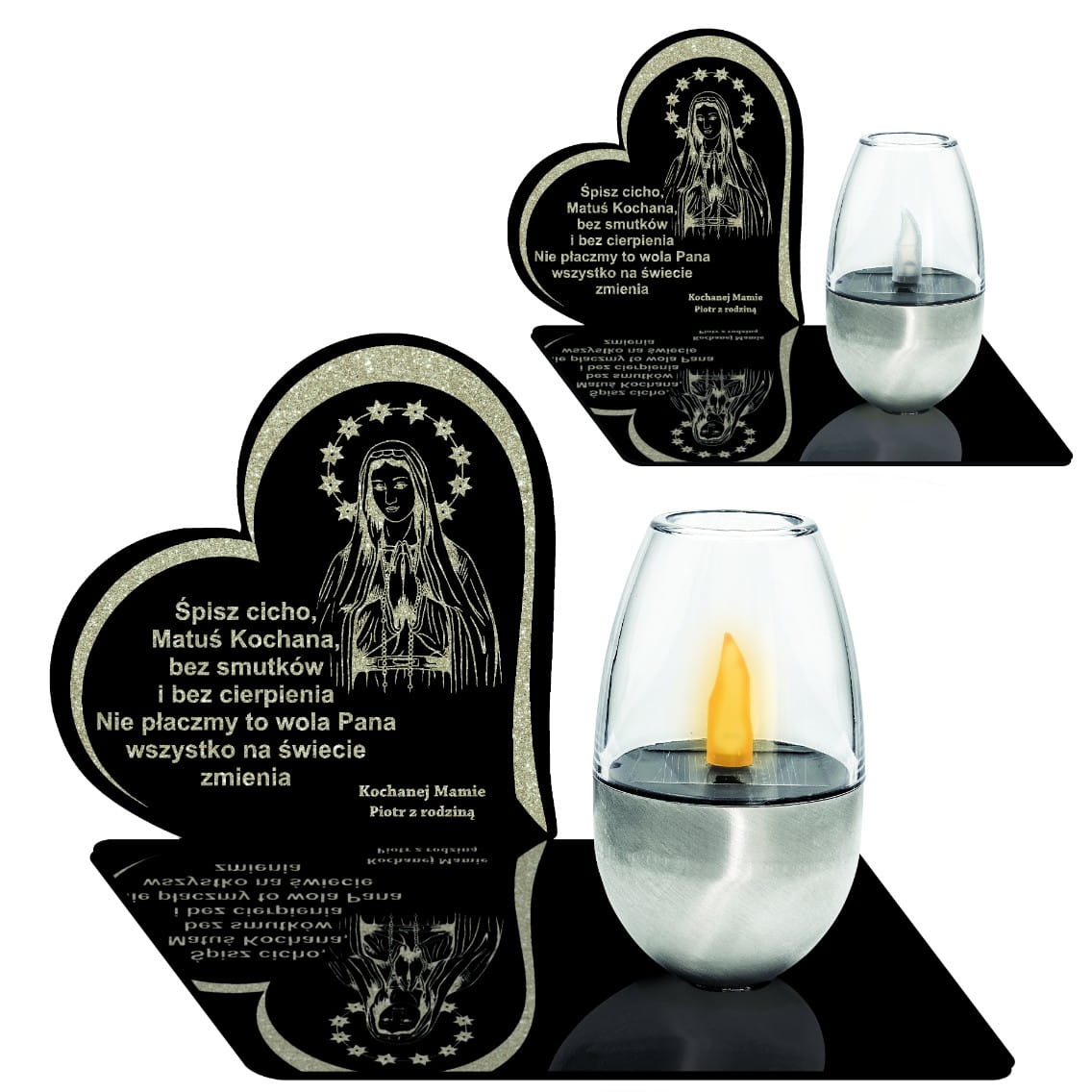 ZNICZ Solarny Statuetka na Grób ZNICZE Cmentarz DUŻY z Kielichem dla Mamy Grawer Sentencja