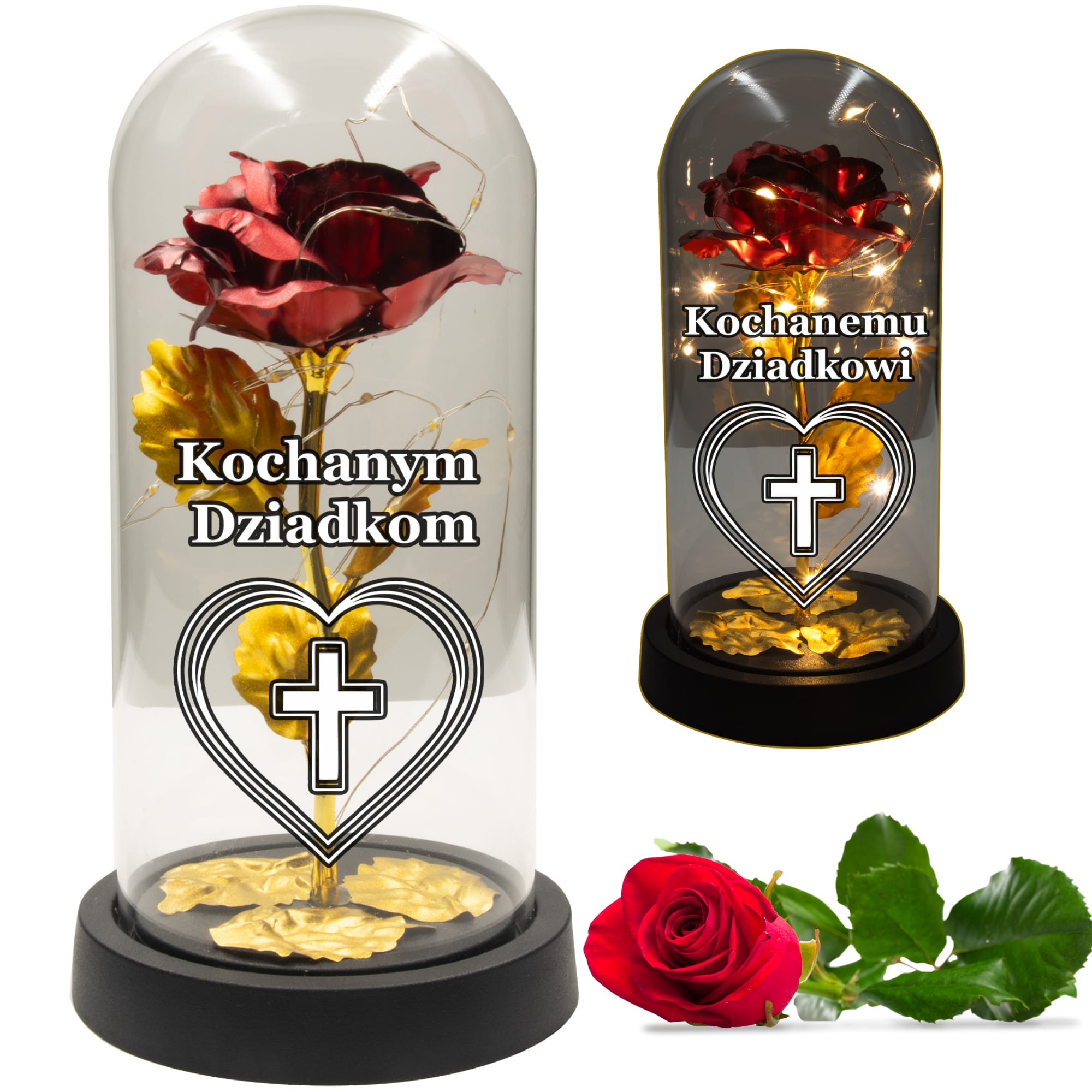 Wyraź swoją wdzięczność i miłość do Dziadków za pomocą eleganckiej Wiecznej Róży Świecącej Znicz. Subtelnie oświetlona czerwona róża, zamknięta w szklanym kloszu, symbolizuje niegasnącą pamięć oraz wyjątkowe wspomnienia, które pozostają na zawsze w sercu.