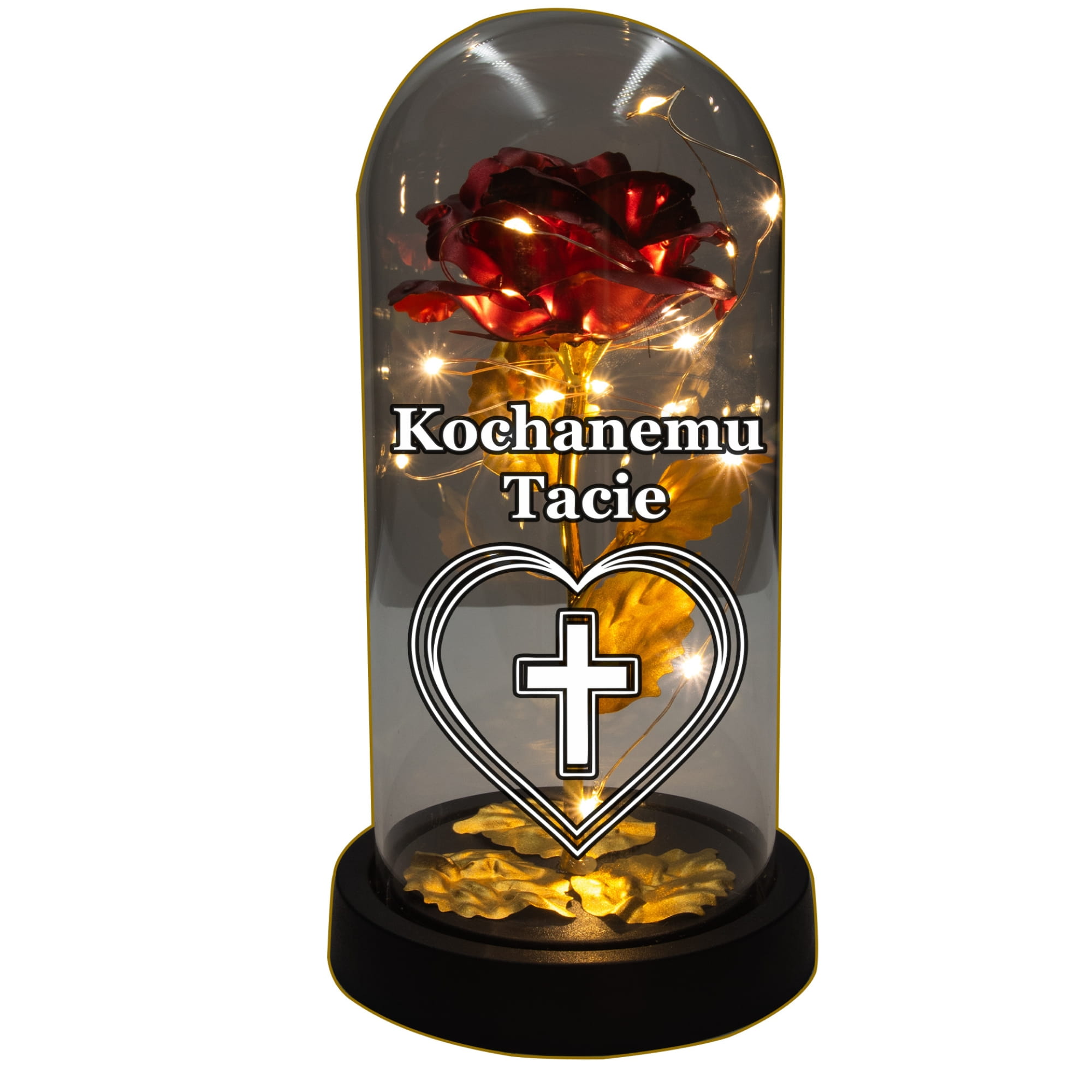 ZNICZ ZŁOTA RÓŻA ŚWIECĄCA LED DLA TATY NA GRÓB KWIATY
