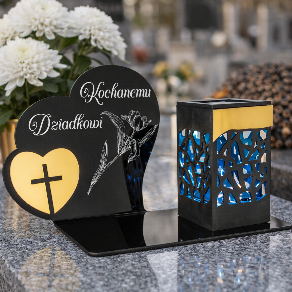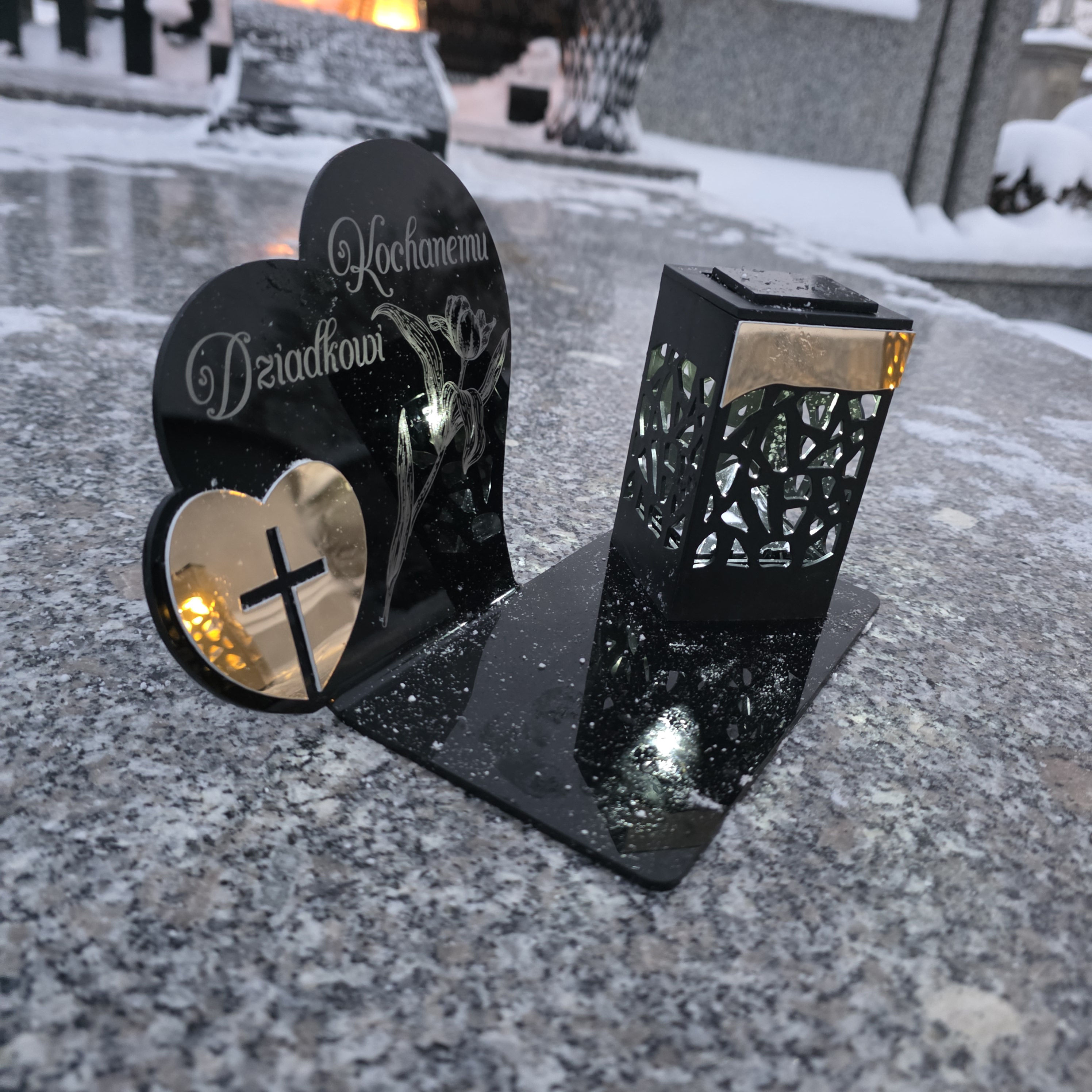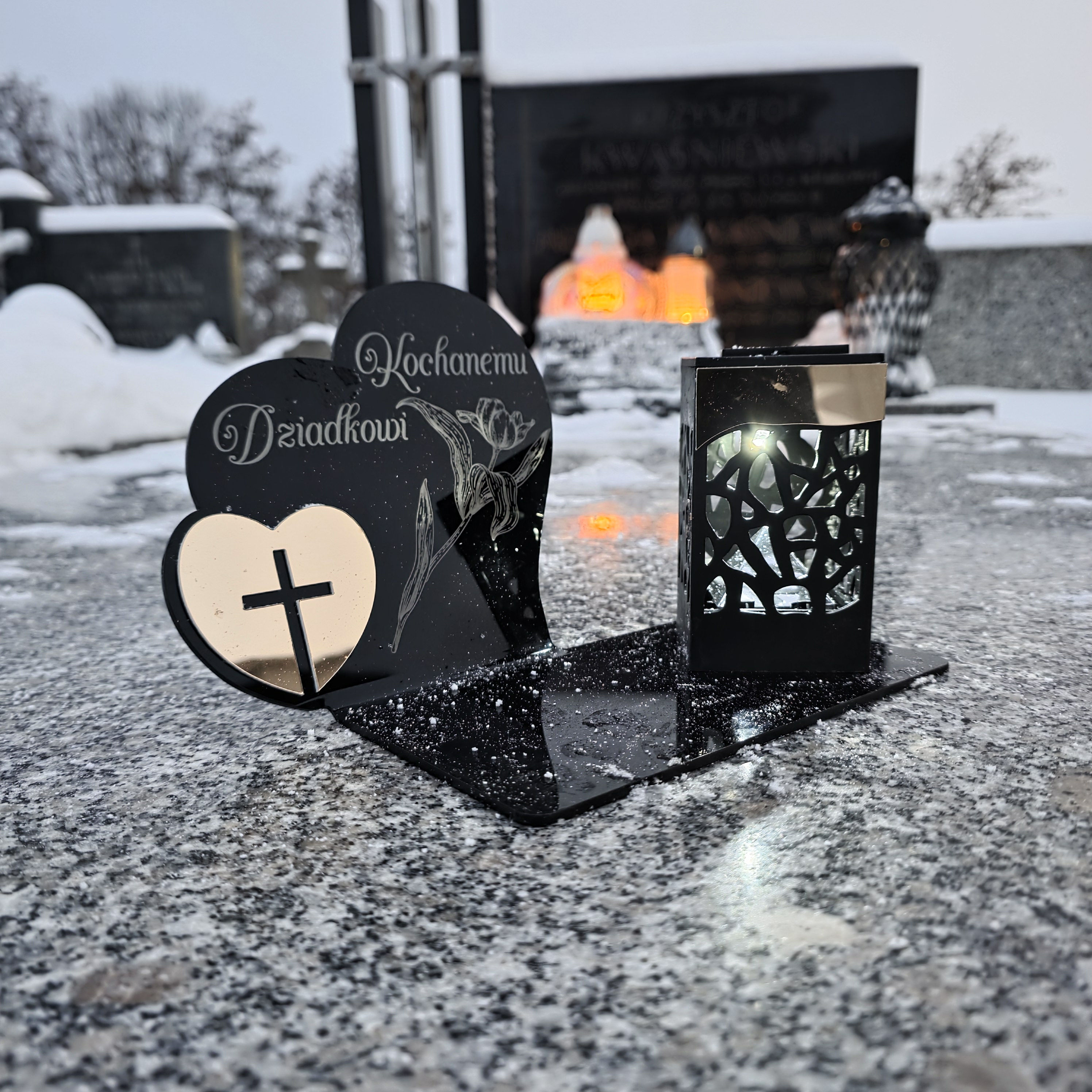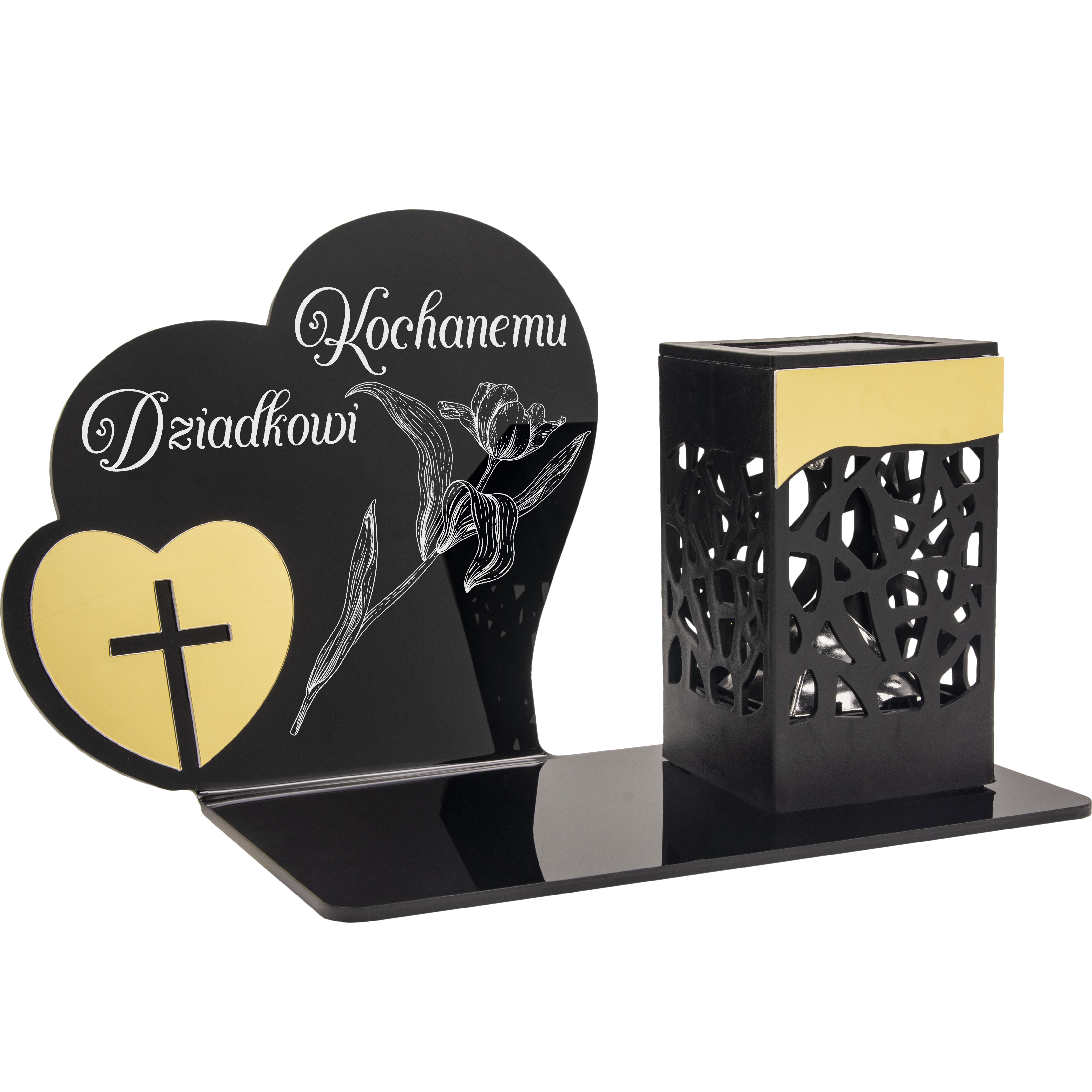 Znicz solarny nagrobny „Kochany Dziadku” z sercem i ozdobną lampką