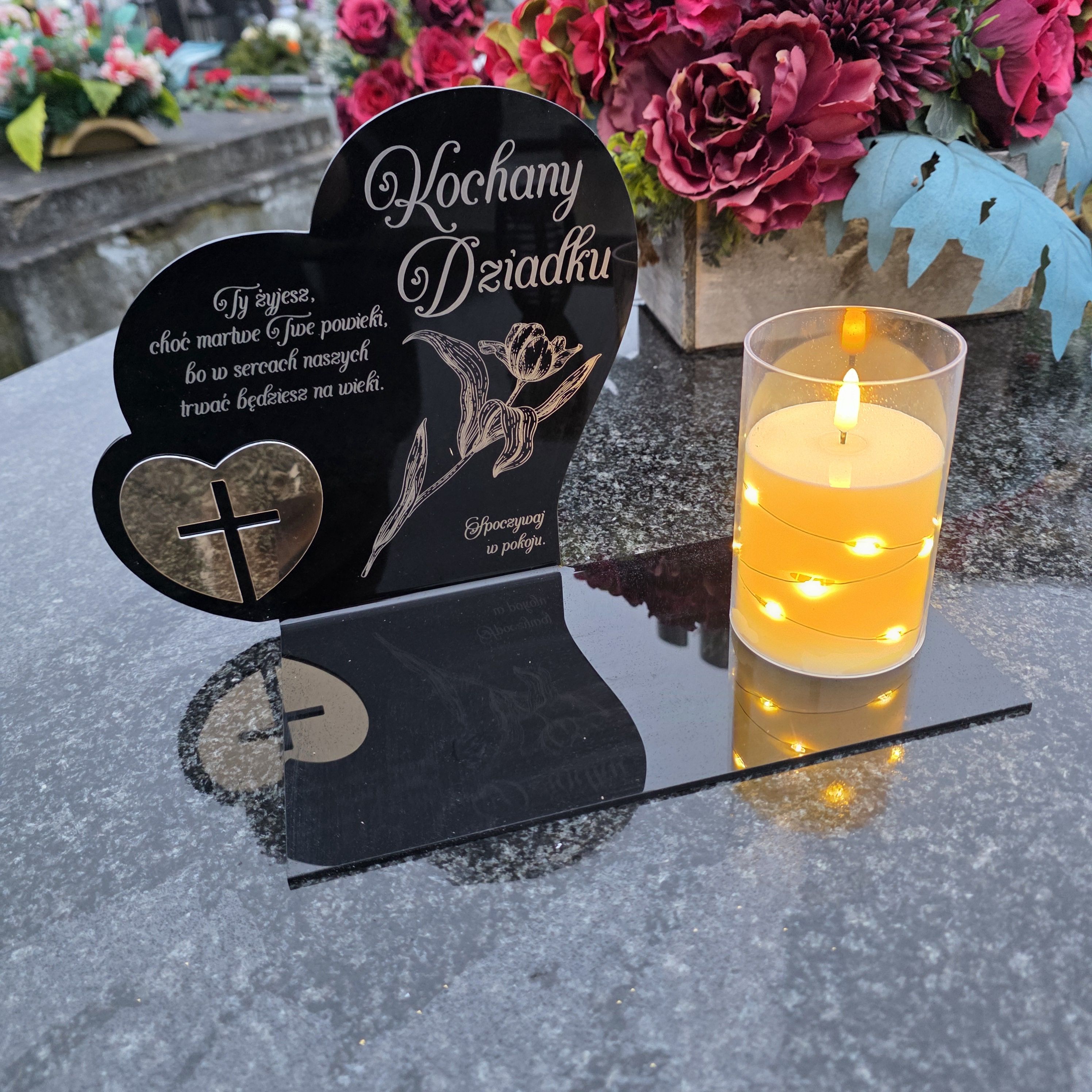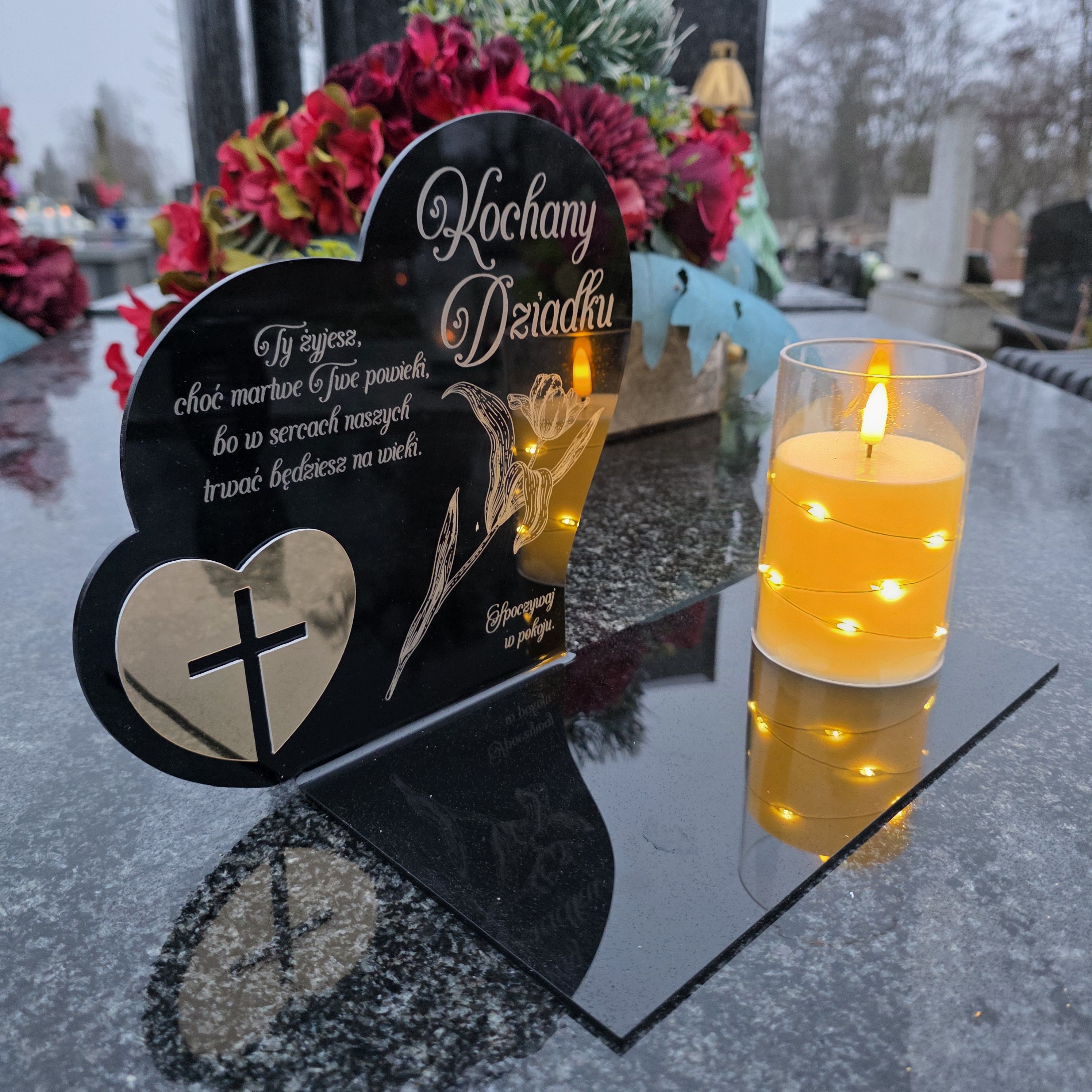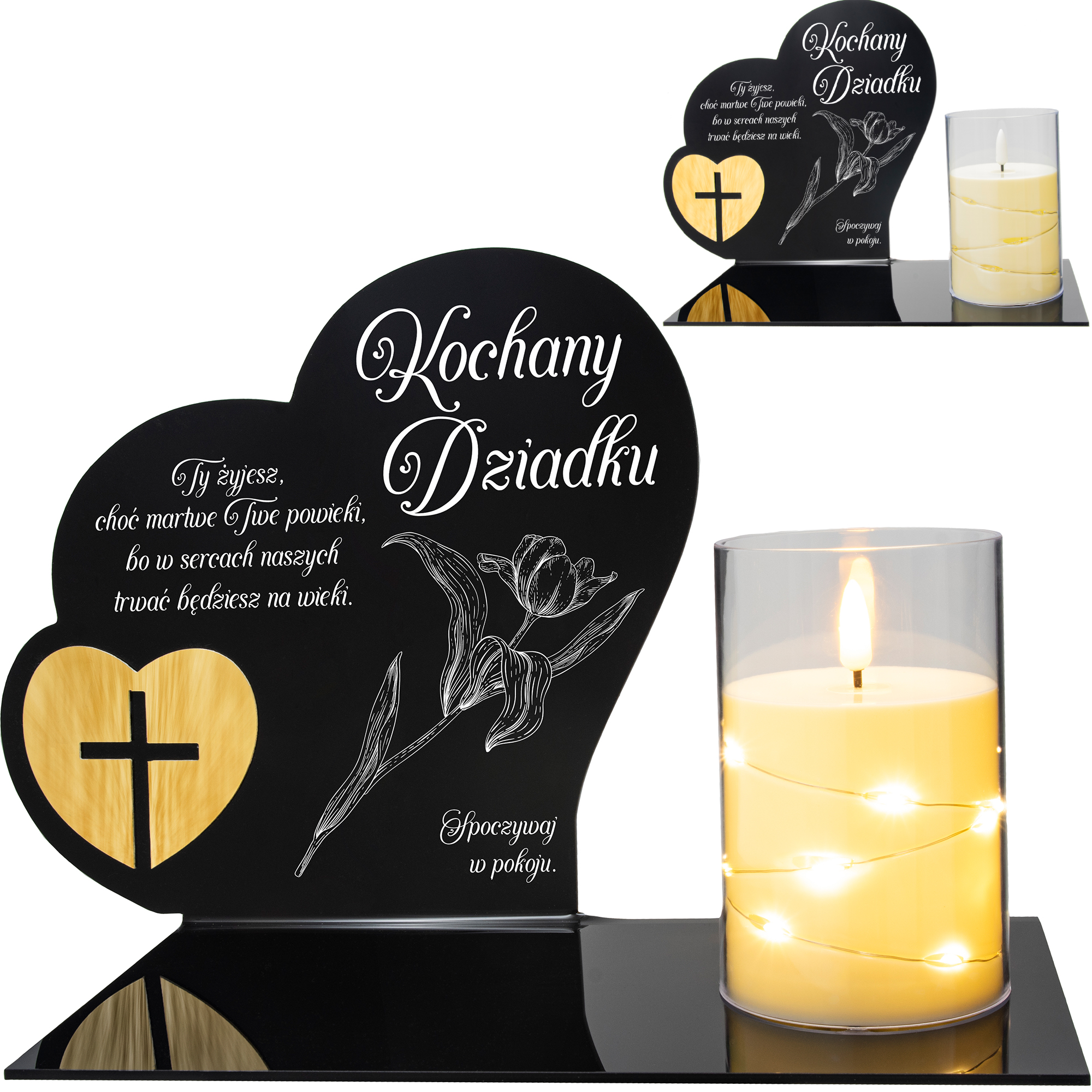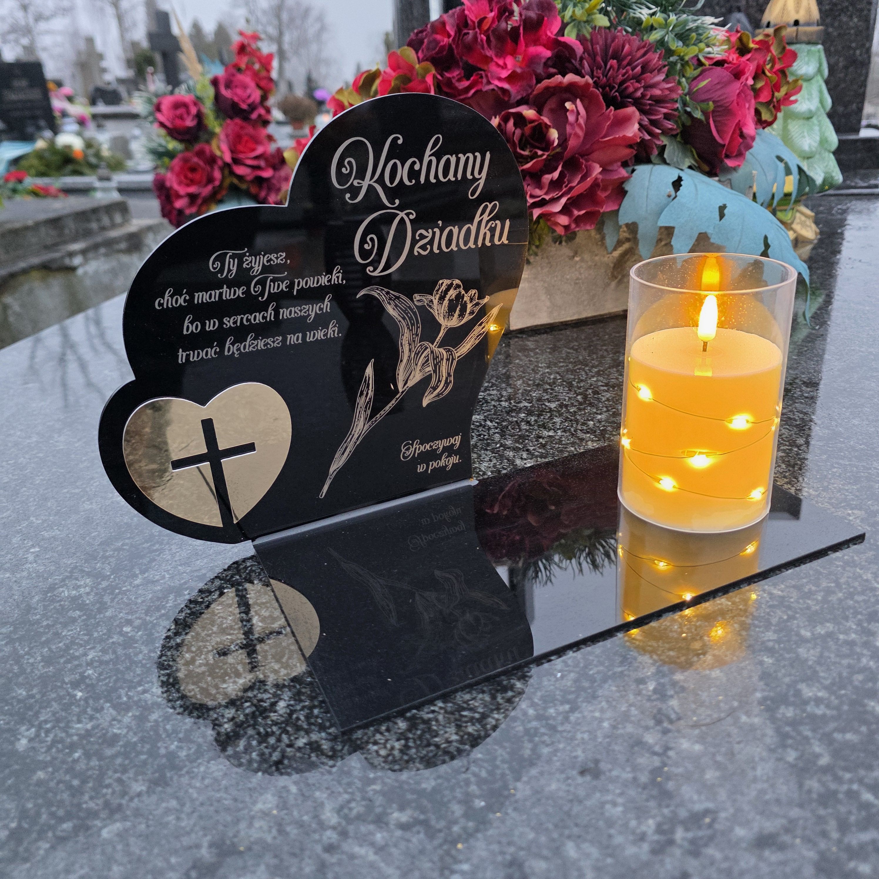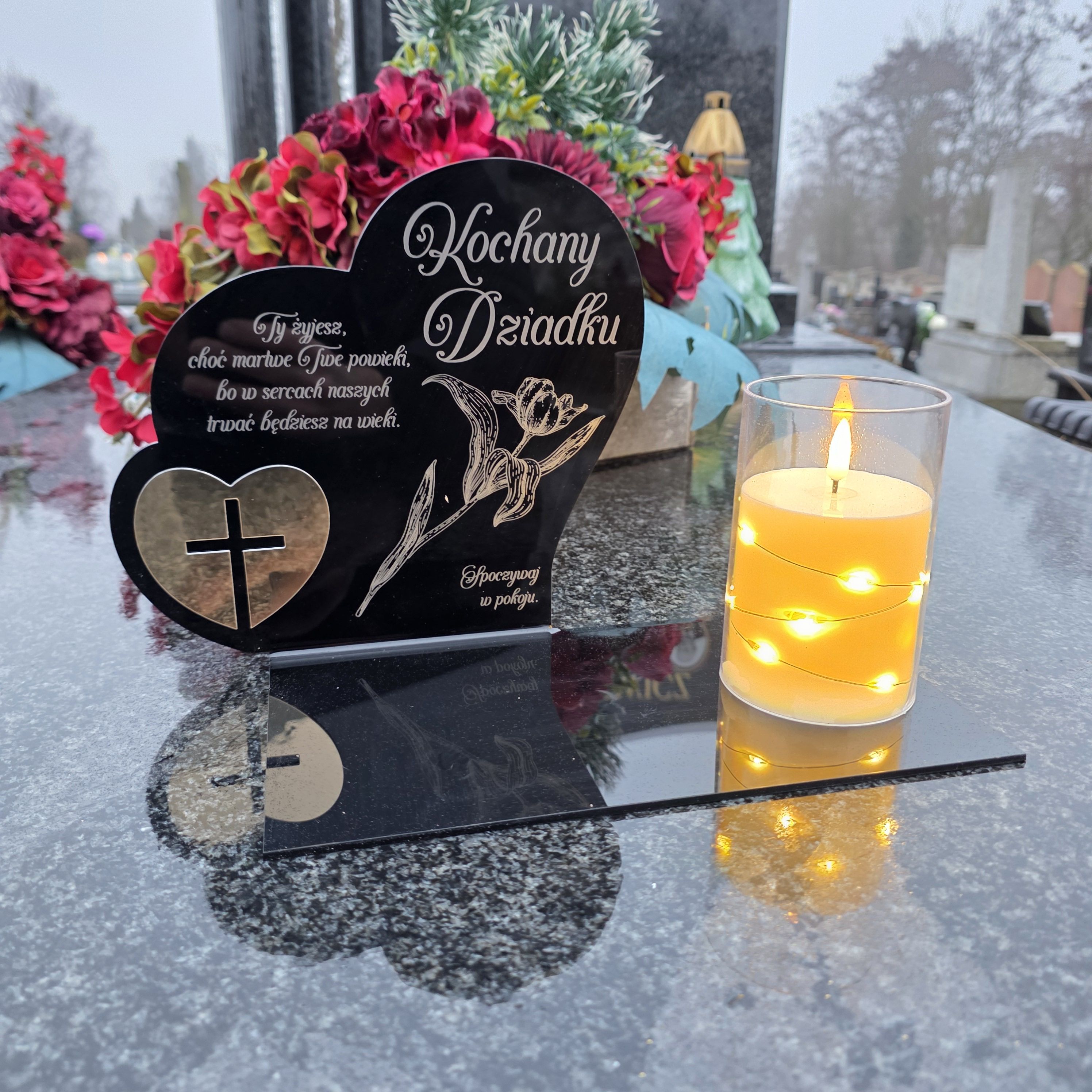 Znicz solarny nagrobny „Kochany Dziadku” z sercem i ozdobną lampką
