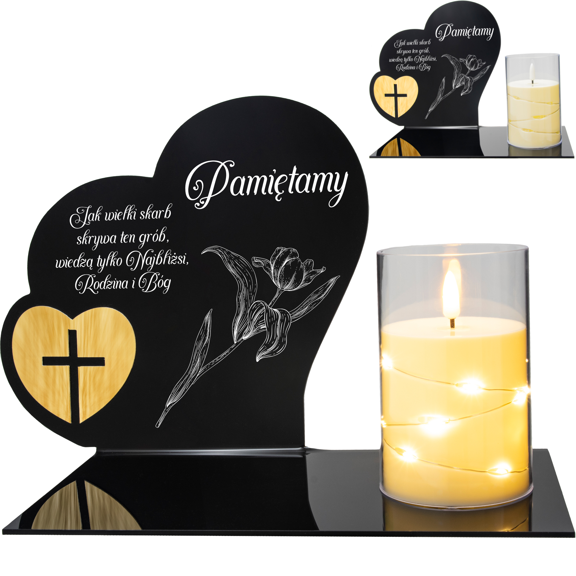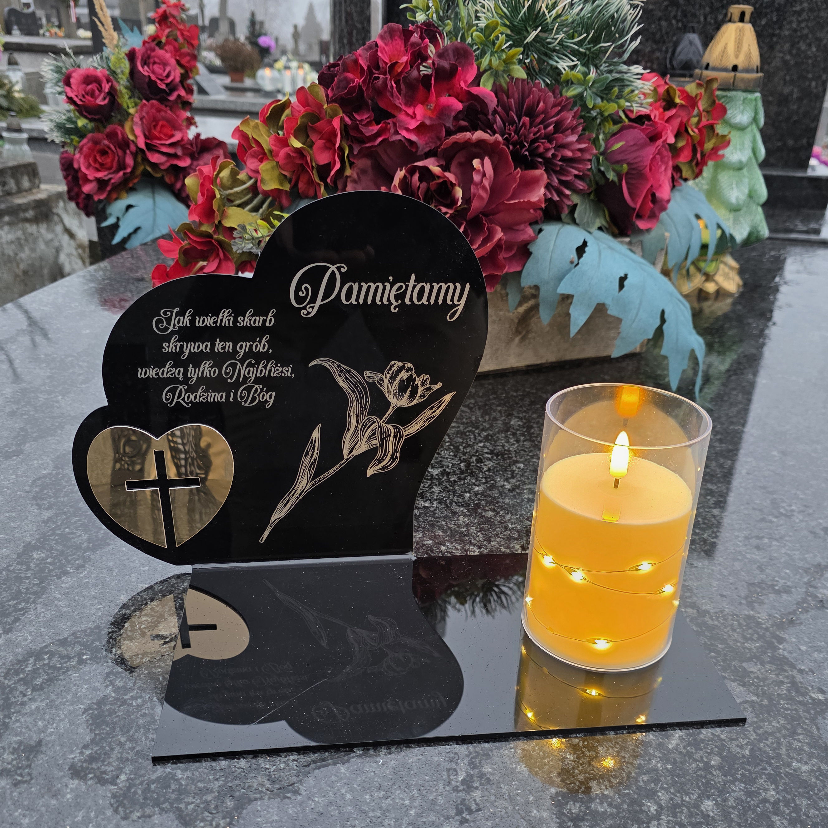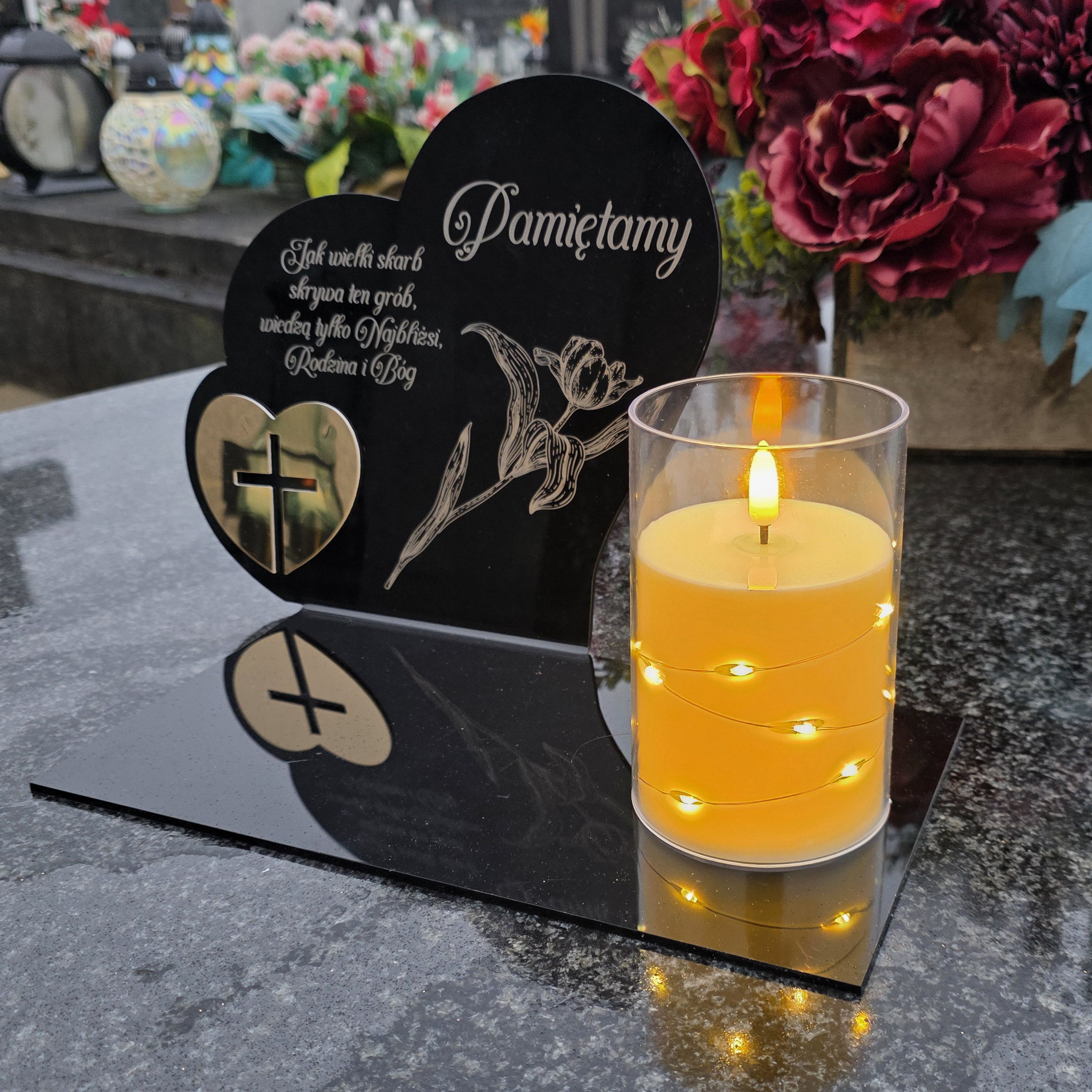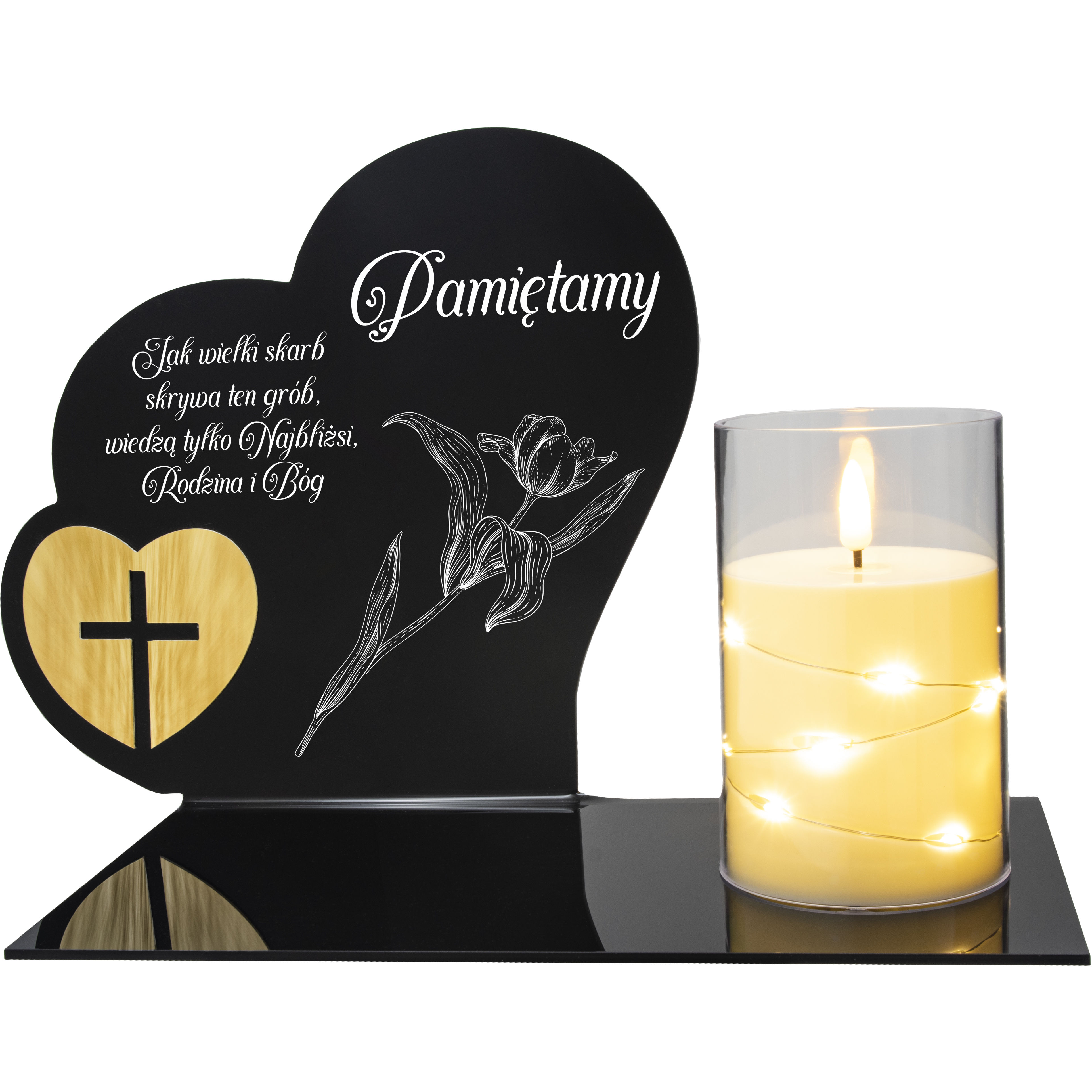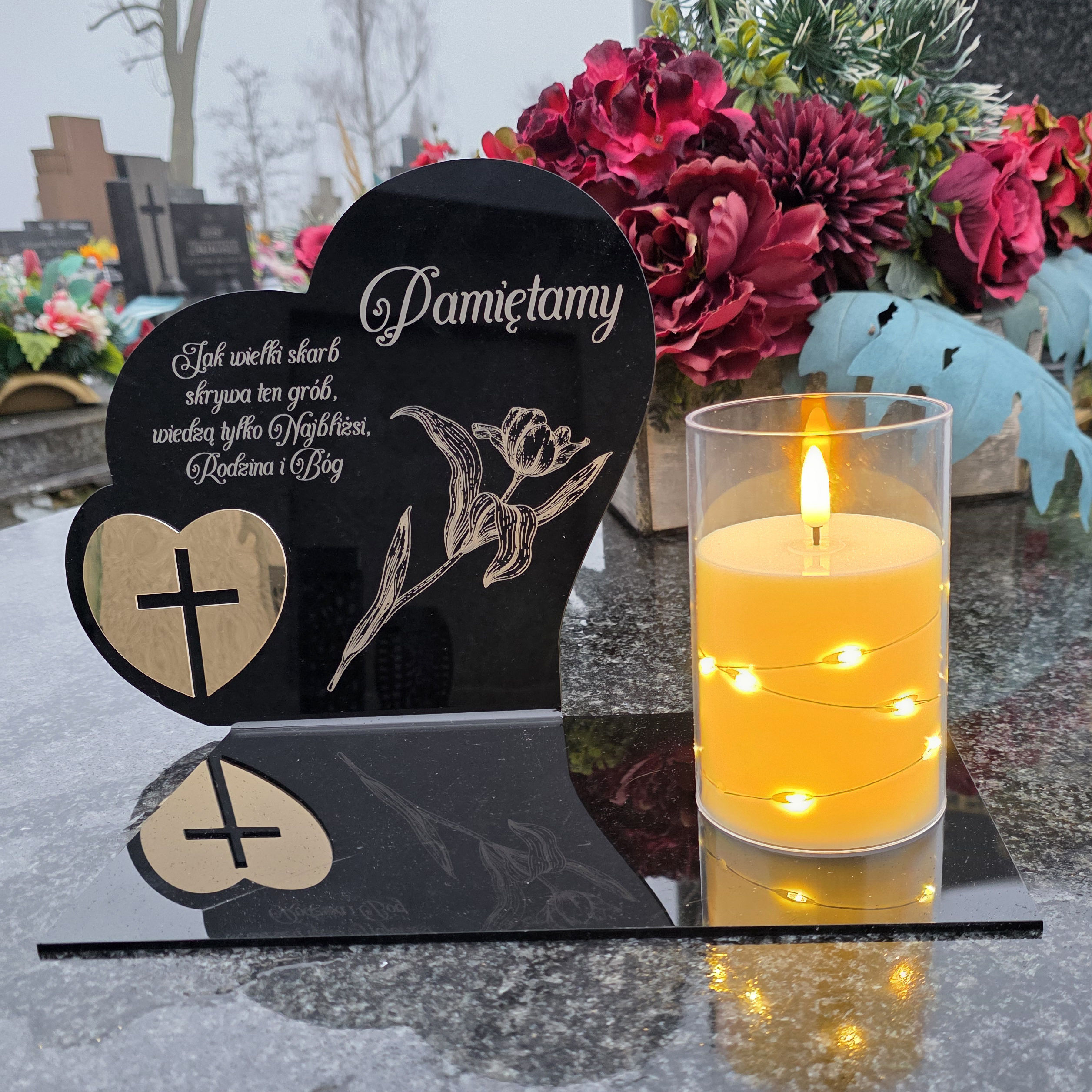 W zestawie: elegancki znicz z lampką