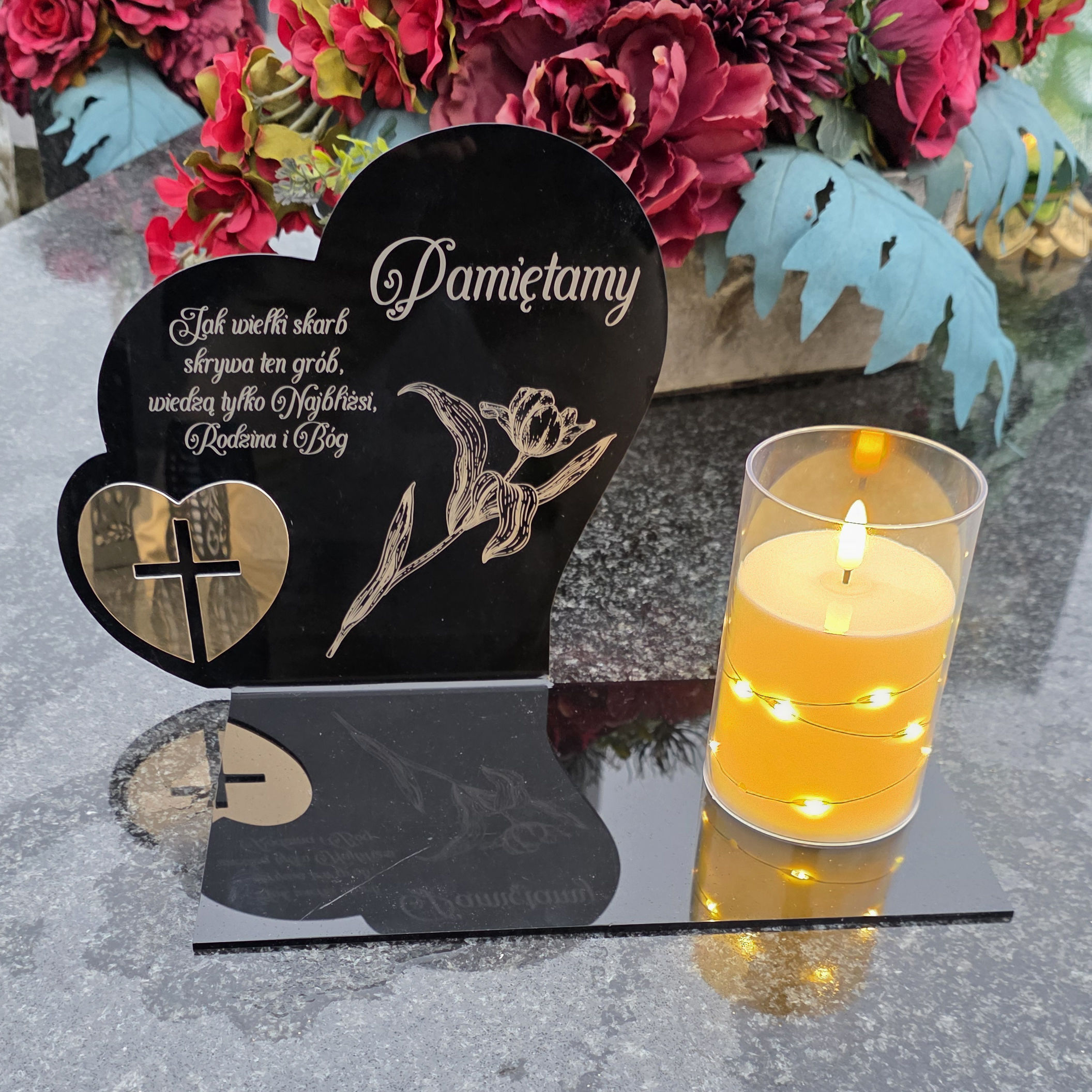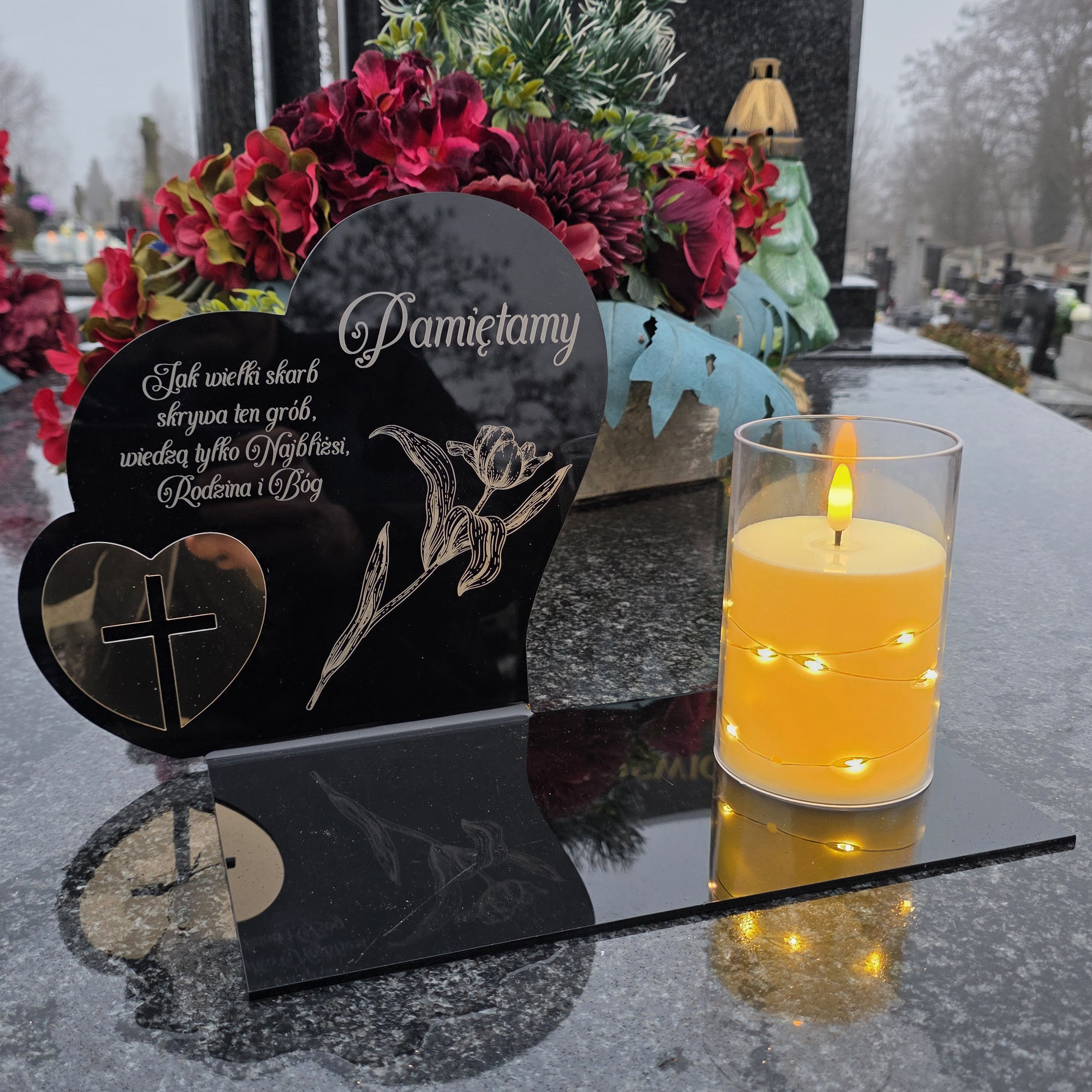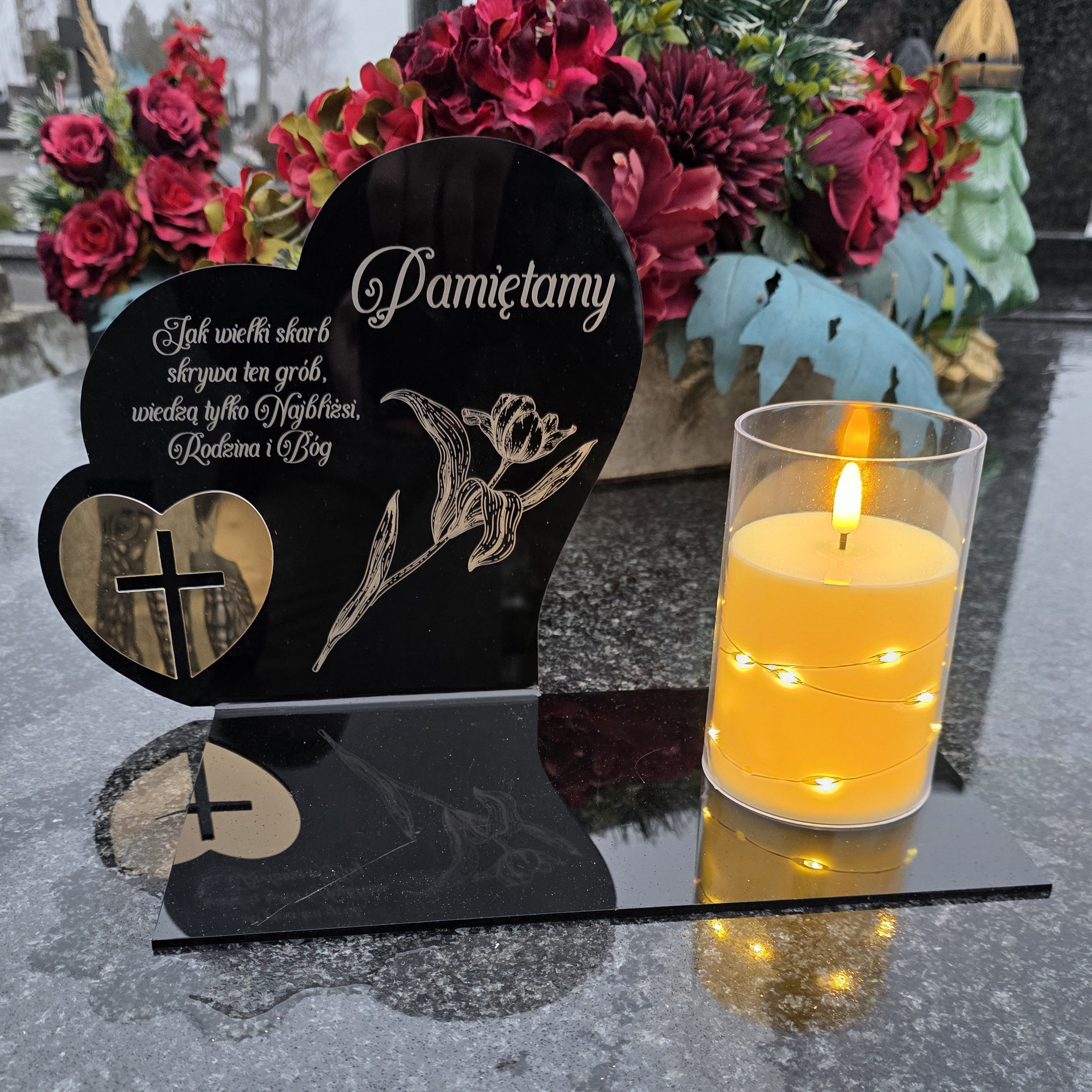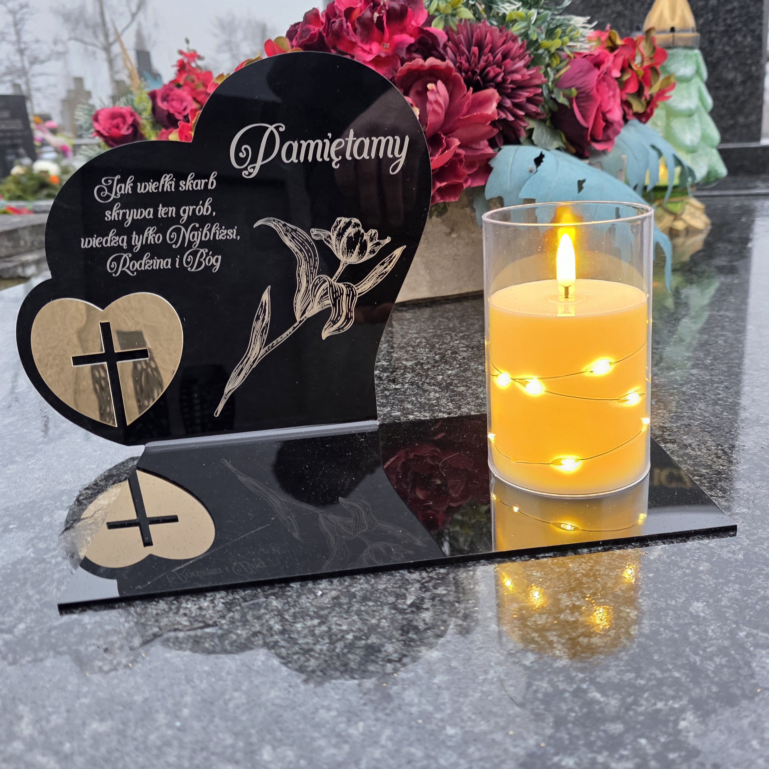 Ten wyjątkowy znicz to symbol pamięci i miłości, który w piękny sposób oddaje. Elegancka forma, wzruszający napis sprawiają, że całość prezentuje się niezwykle dostojnie i estetycznie.