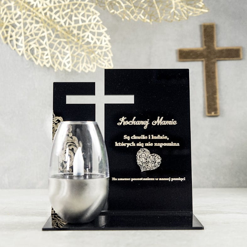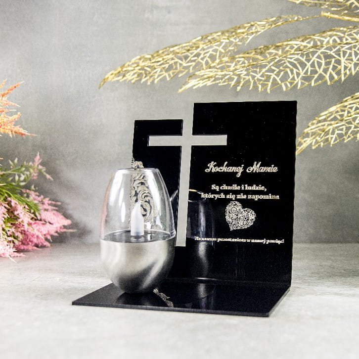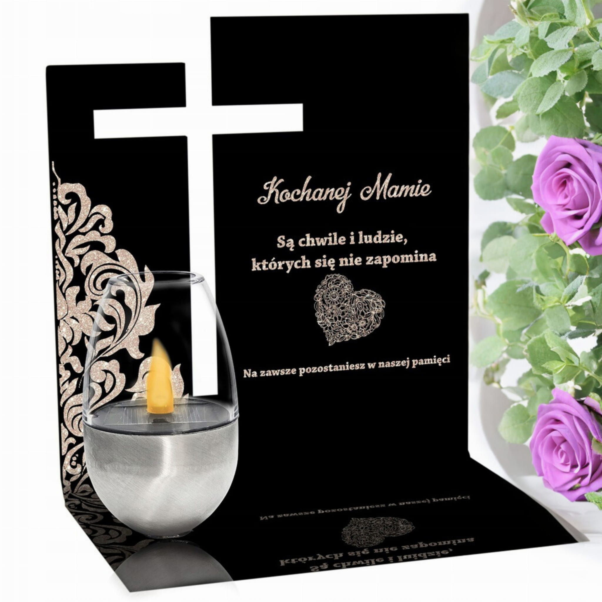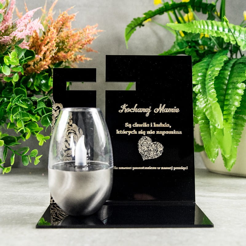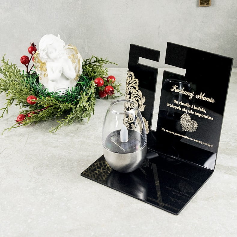 Znicz Solarny dla MAMY Wieczny na GRÓB Cmentarz Ruchomy PŁOMIEŃ Akryl