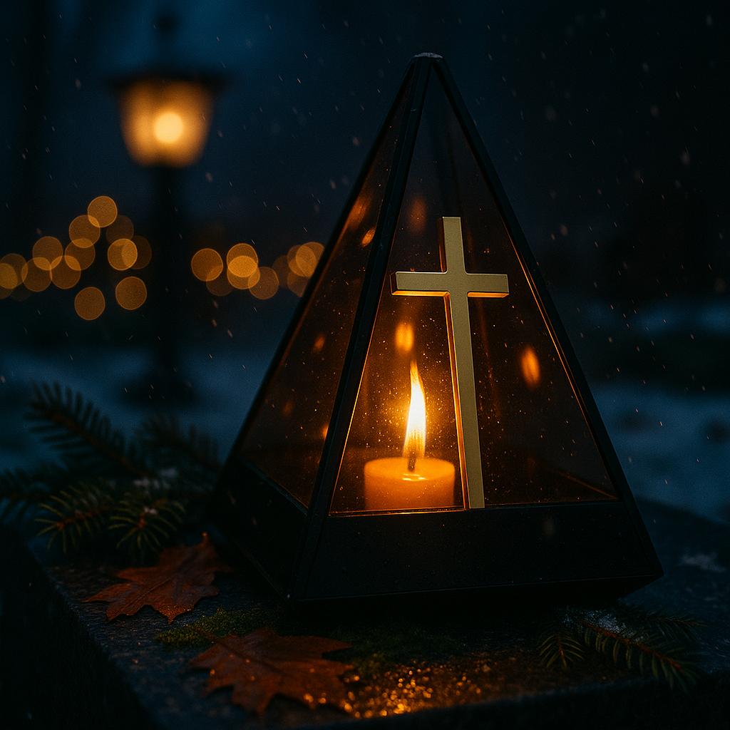 Szukasz wyjątkowego, eleganckiego znicza, który pięknie zdobi nagrobek i tworzy niezwykłą, świąteczną atmosferę? Ten nowoczesny znicz LED w kształcie piramidy to połączenie klasy, blasku i trwałości – idealny zarówno na okres Świąt, jak i jako całoroczna dekoracja pamięci.