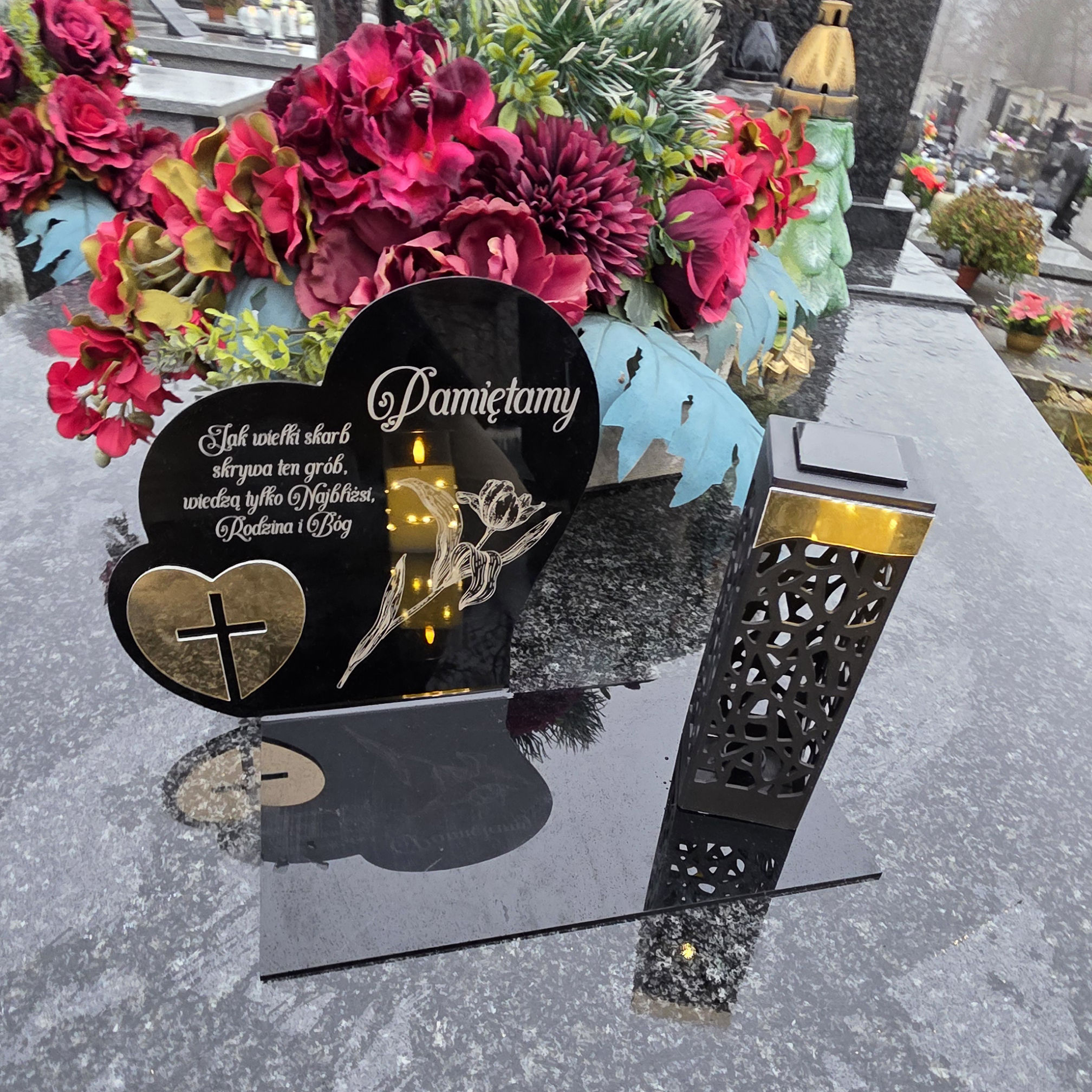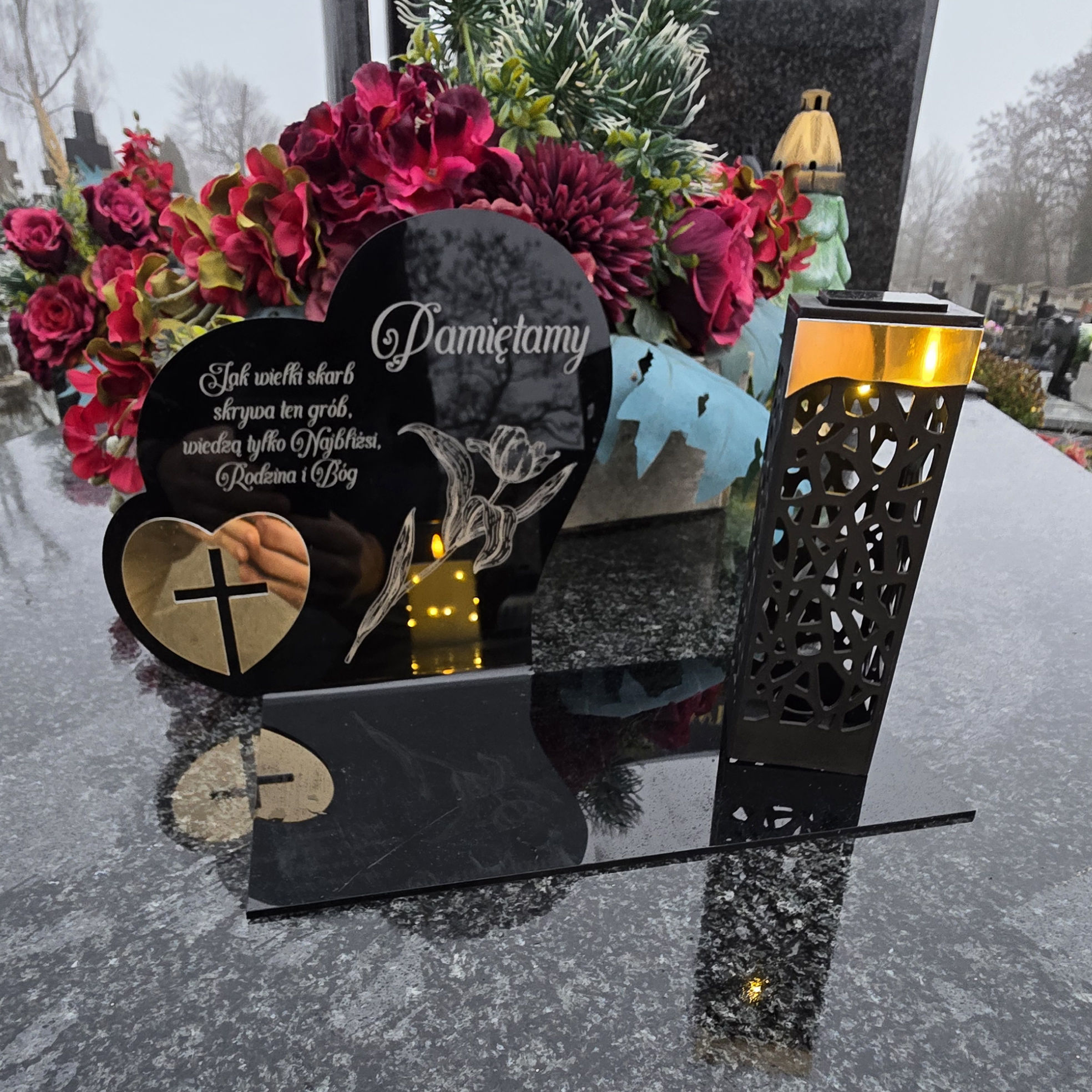 W zestawie: elegancki znicz z lampką