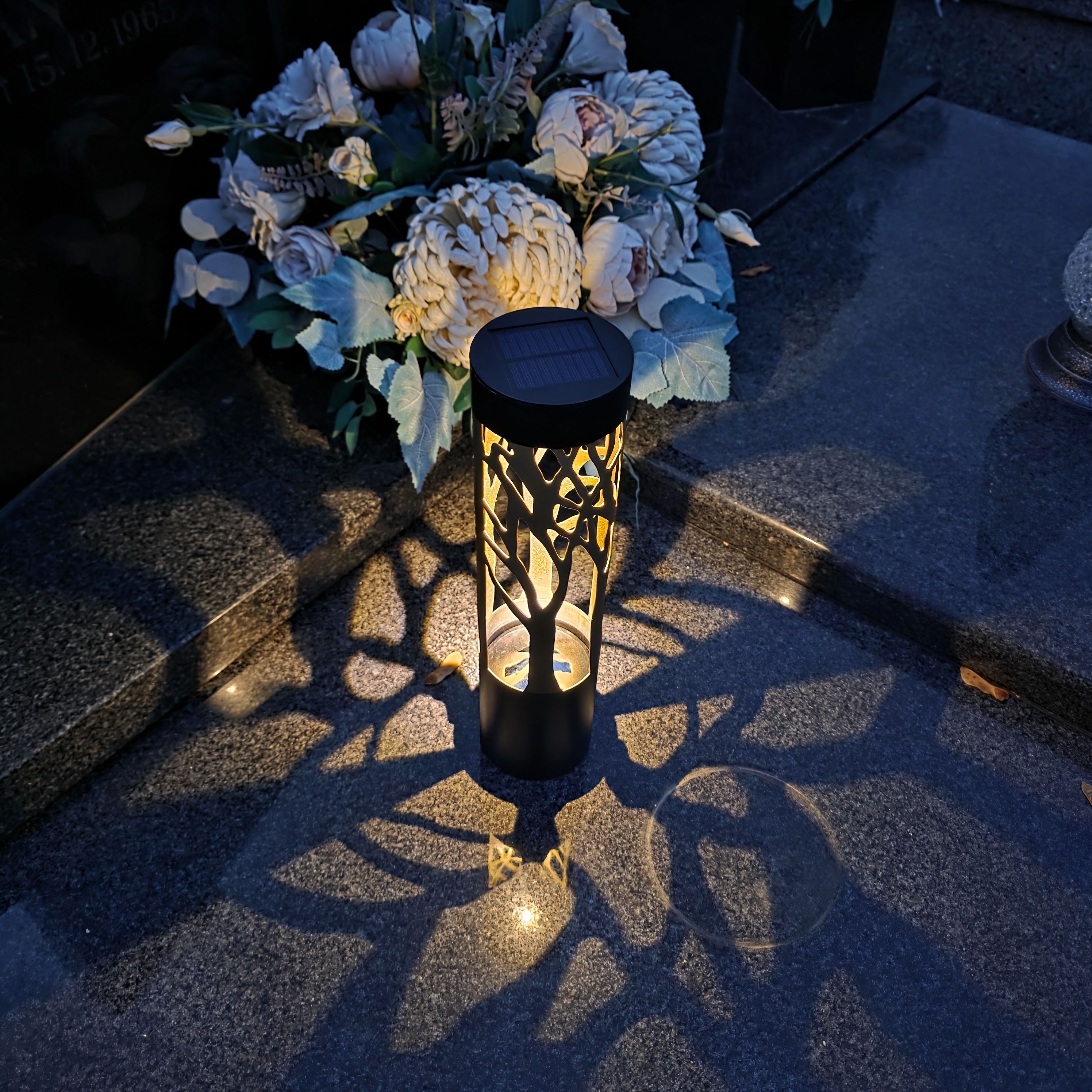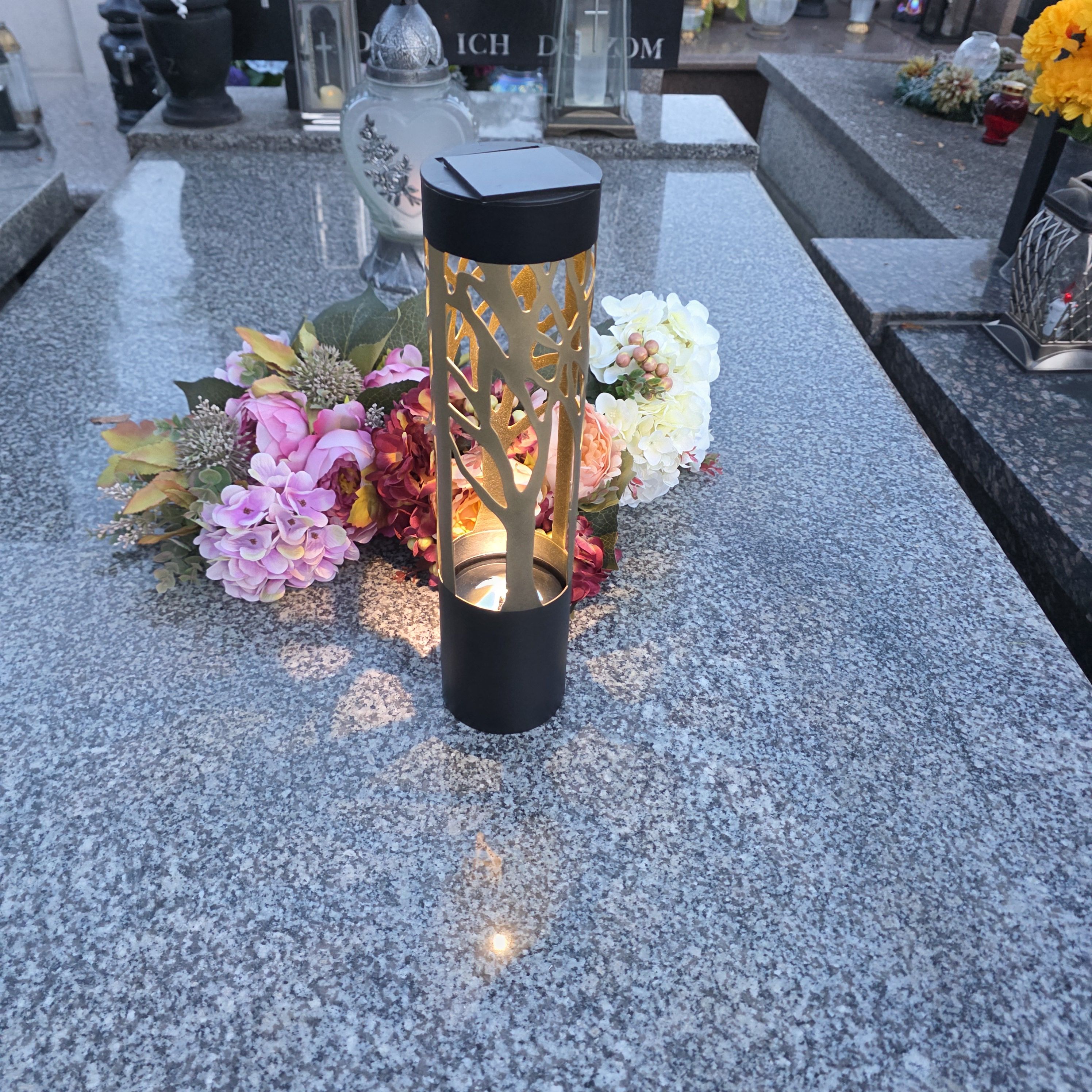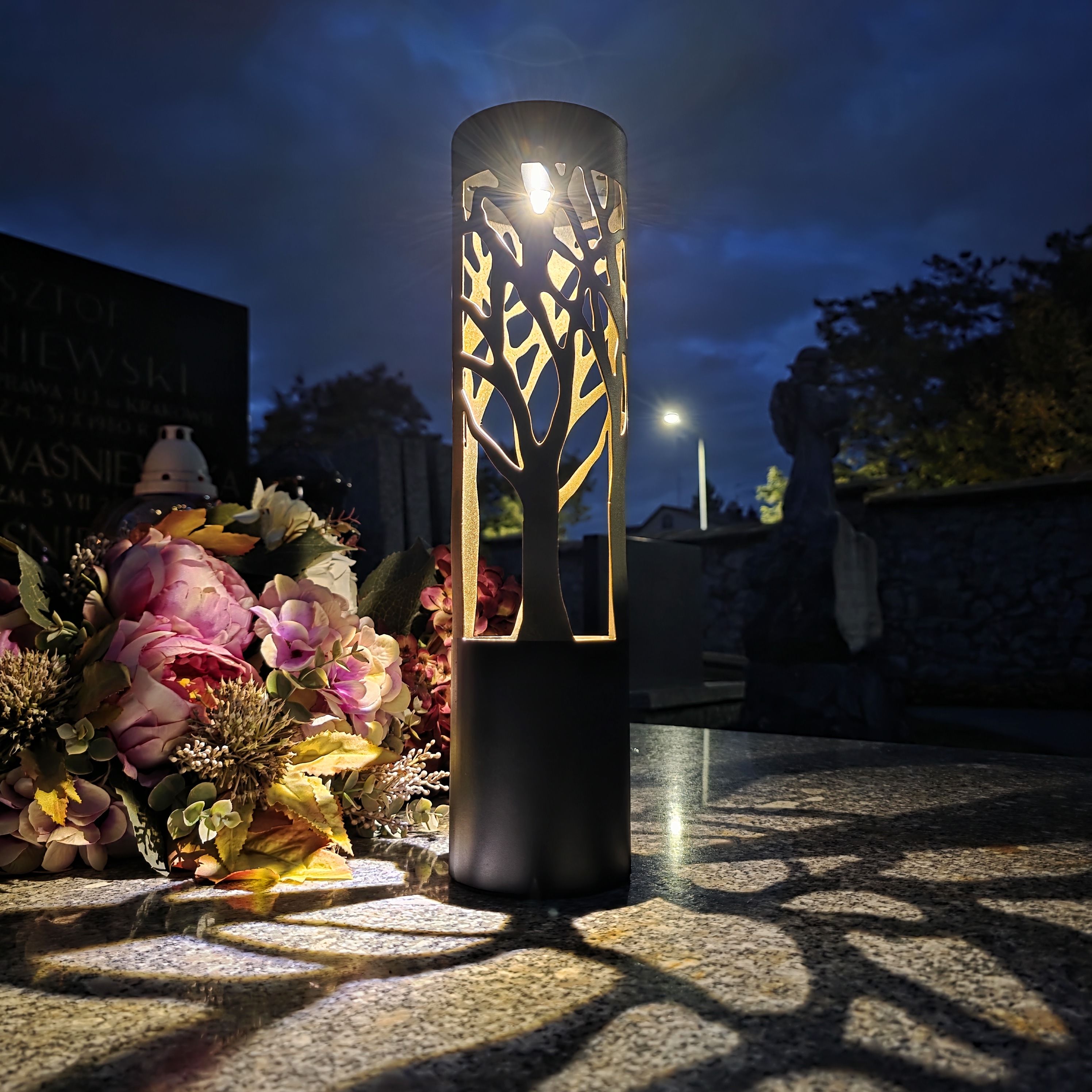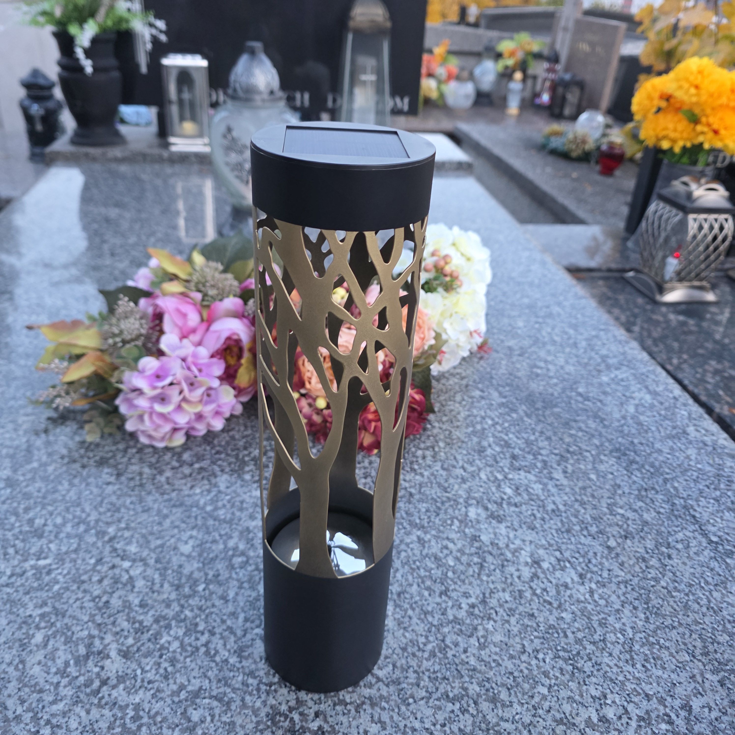 Znicz solarny LED lampion NA GRÓB cmentarz ZŁOTE DRZEWO wieczne duży