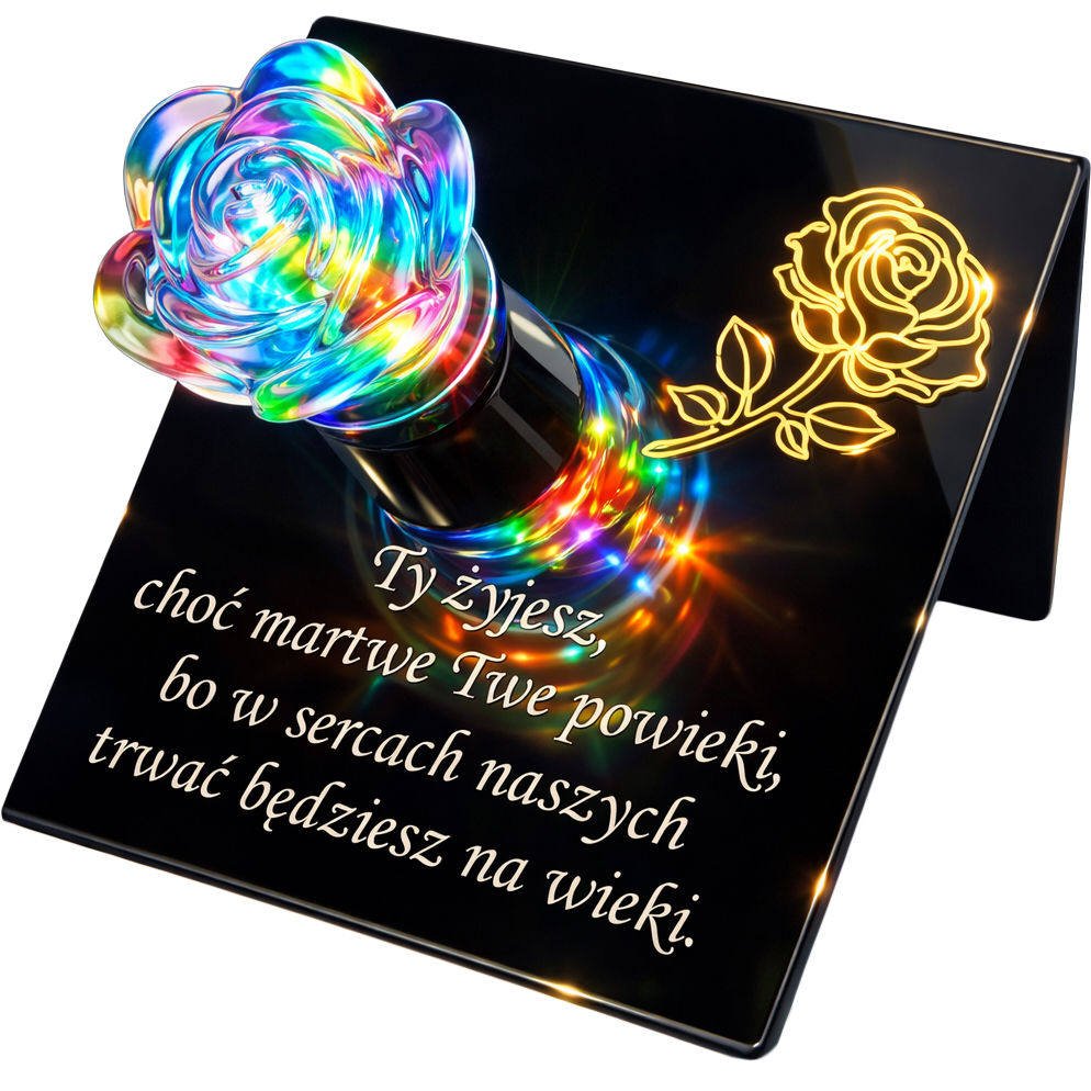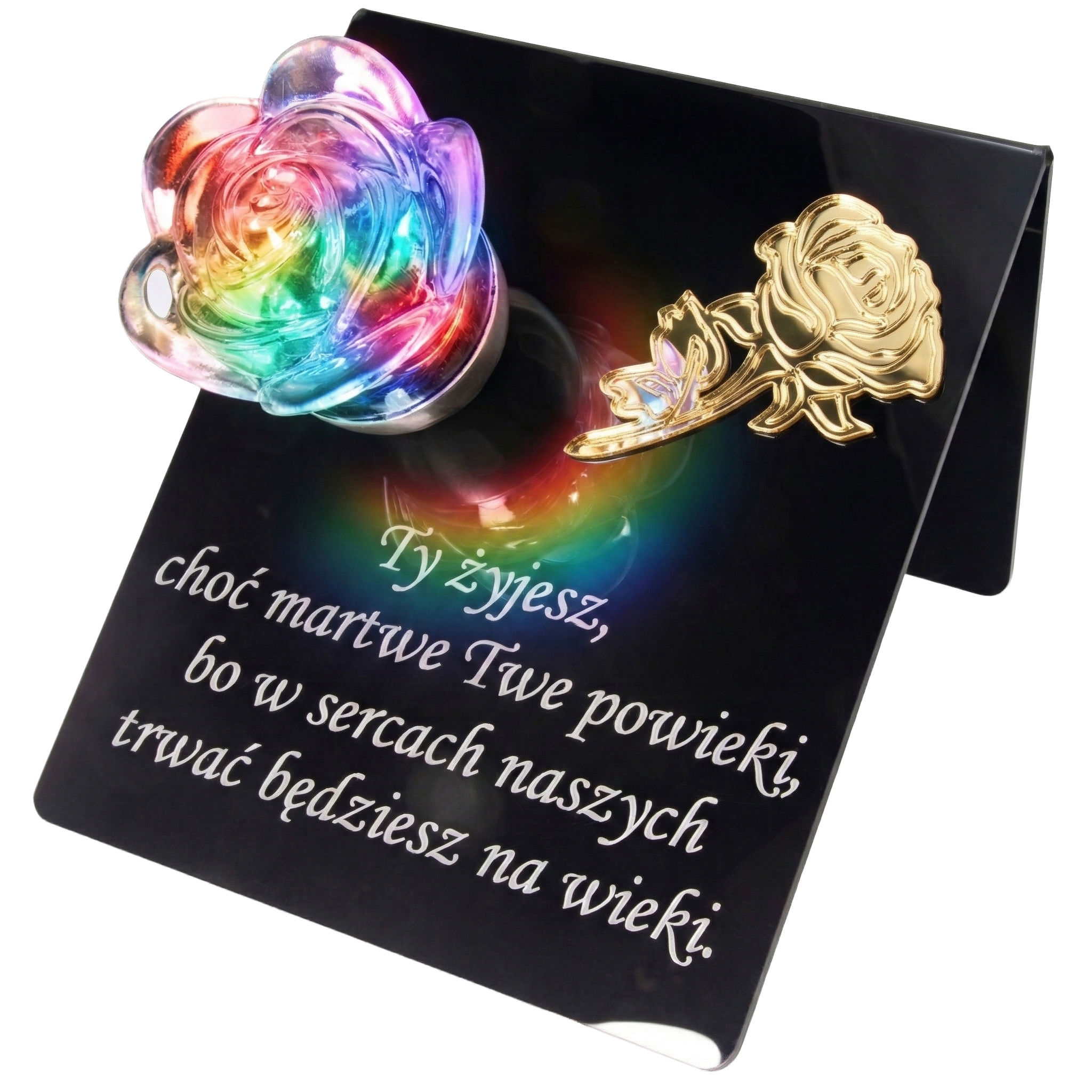 Wyjątkowy znicz z efektowną, podświetlaną różą LED to piękna forma uczczenia pamięci bliskich. Subtelne światło tworzy niezwykle elegancki i spokojny klimat na grobie, podkreślając szacunek i pamięć.